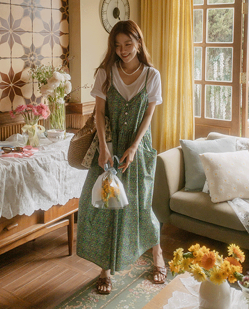 푸켓 플라워 빅포켓 나시 원피스 [Free(55~77)]