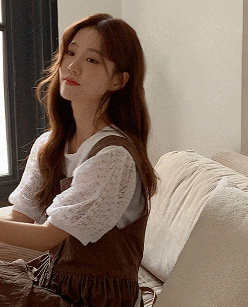 코이로 소매 레이스 볼륨 반팔티 [Free(55~77)]