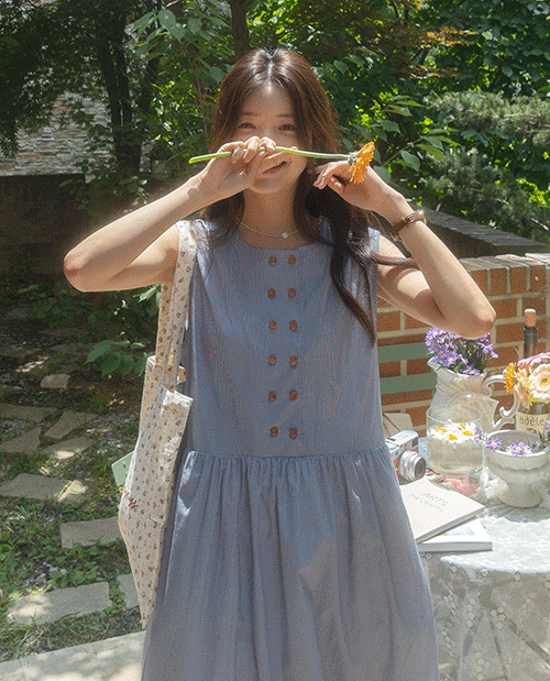 [얇고 시원한] 멜로드 스트라이프 투버튼 나시 롱원피스 [Free(55~77)]