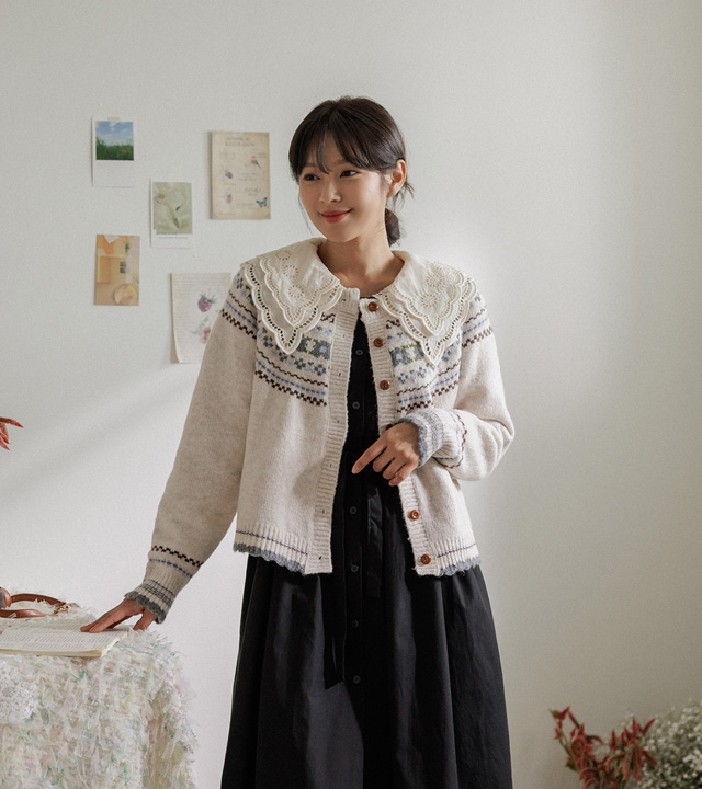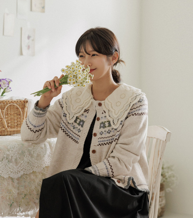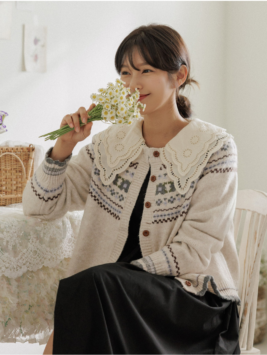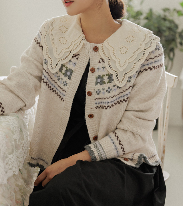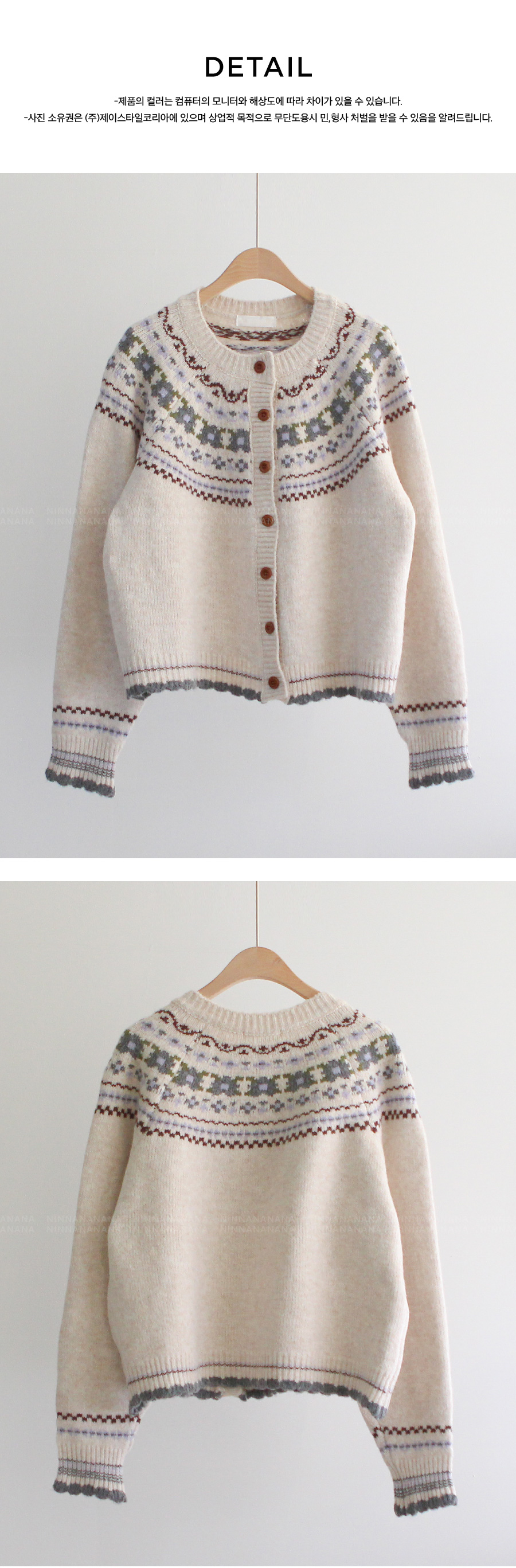 오뉴얼 자가드 니트 가디건 [Free(55~77)]