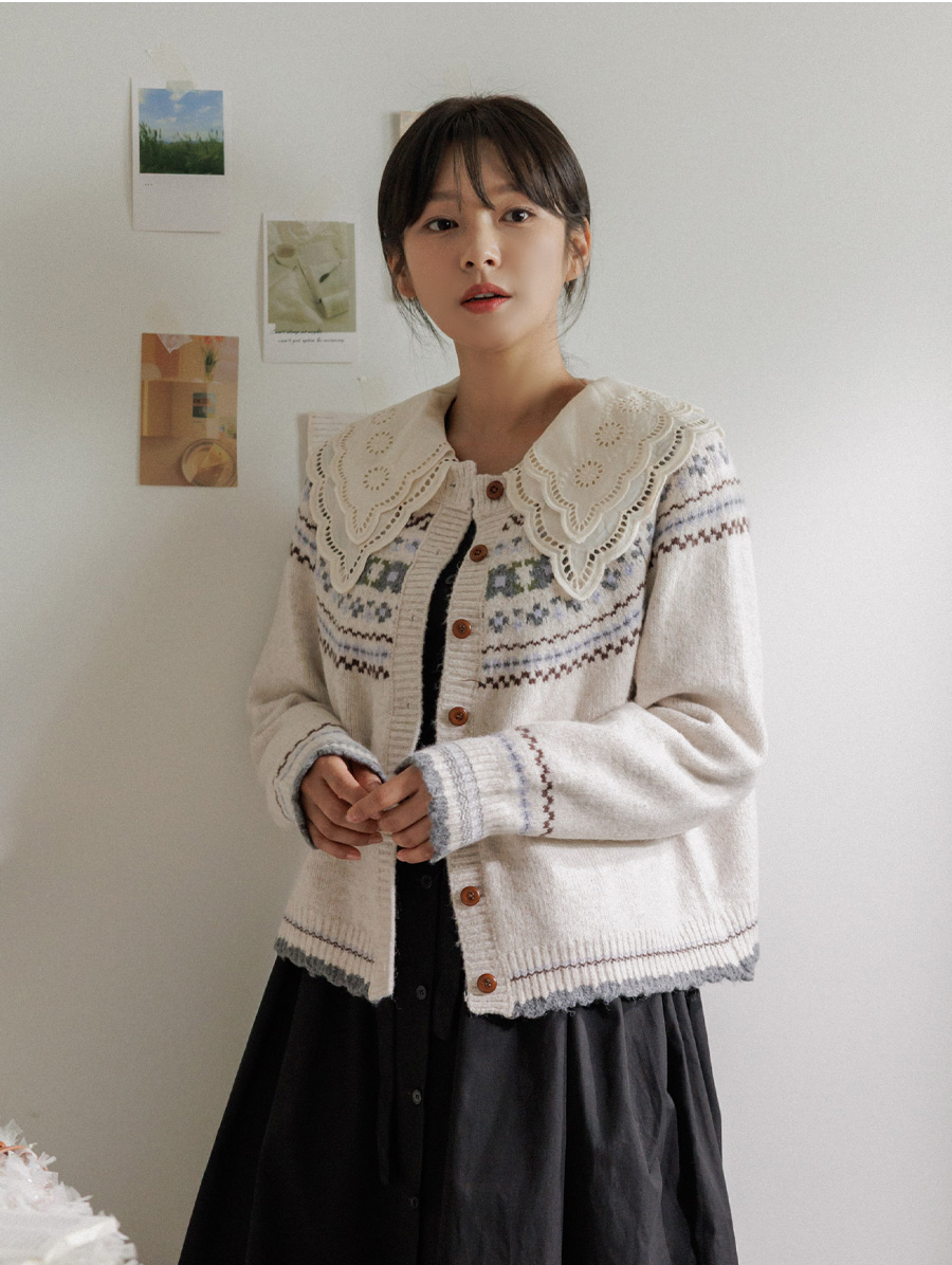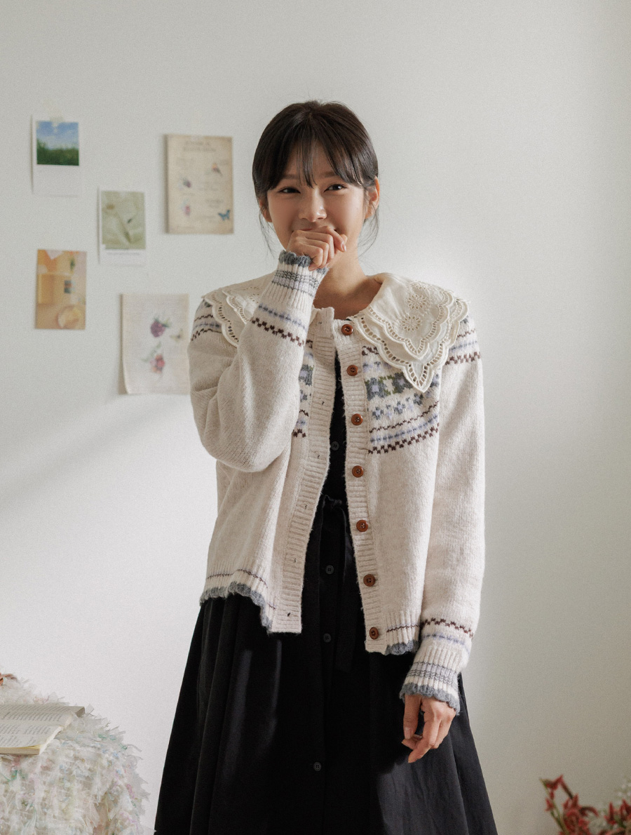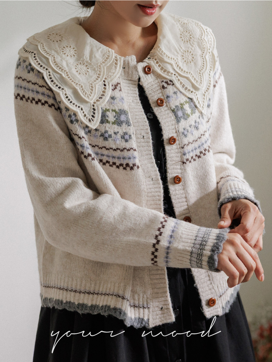 오뉴얼 자가드 니트 가디건 [Free(55~77)]