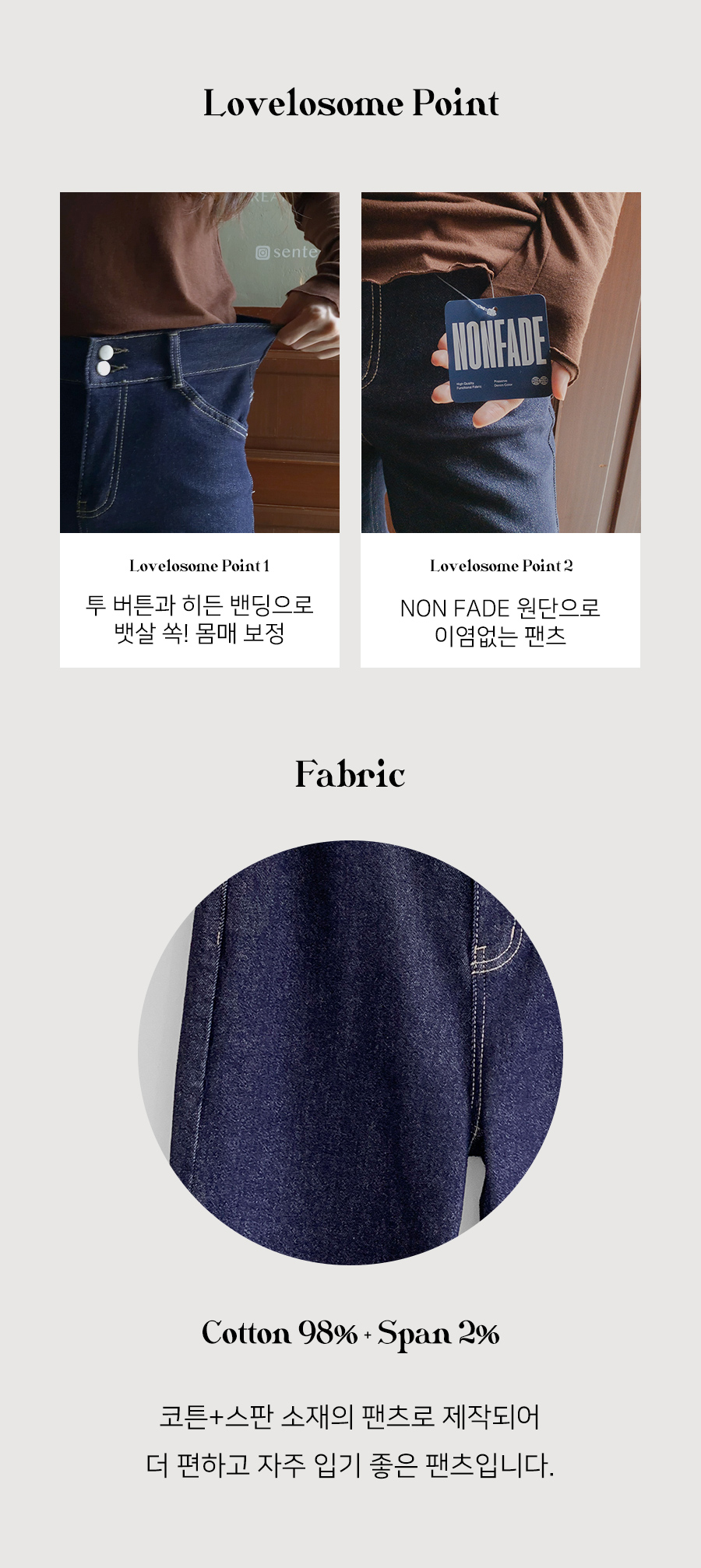 [히든밴딩] 애니츠 투버튼 논페이드 데님팬츠 [S(55),M(66),L(77),XL(88)]