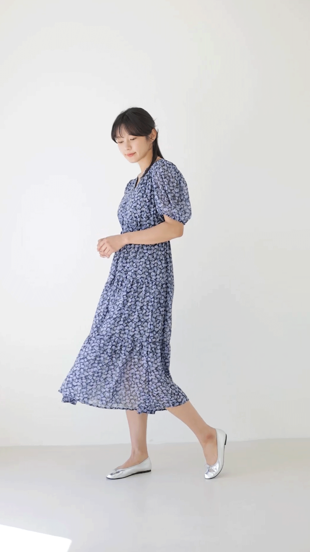 퐁듀 잔꽃 쉬폰 롱 원피스