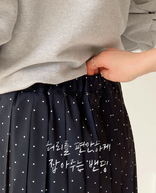 [뒷밴딩][찰랑찰랑] 베렐 도트 핀턱 실크무드 롱 스커트 [Free(55~66)]