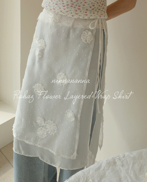 로하츠 플라워 레이어드 랩 스커트 [Free(55~77)]