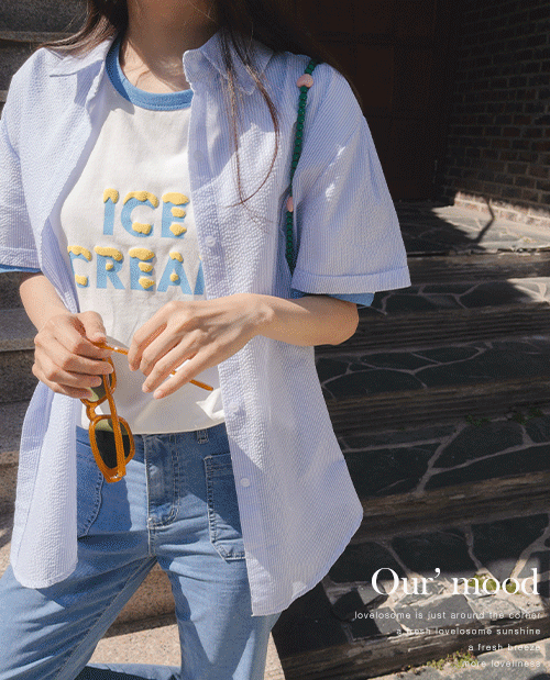 [시어서커 소재로 시원하게 입기 좋아요~][넉넉한 핏감으로 편안하게 !][카라넥 라인][잔스트라이프 원단과 롤업 소맷단으로 포인트를 ♥][언발 기장감으로 멋스러운 무드를]