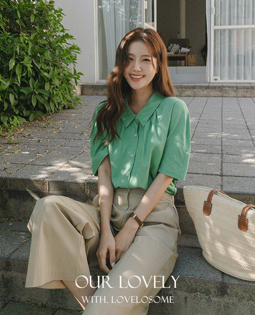 [찰찰~린넨소재] 찰리 핀턱카라 반팔 블라우스 [Free(55~66반)]
