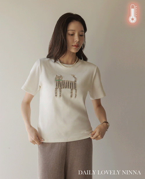 [기모안감] 모레아 캣 프린팅 기모 반팔 티셔츠 [Free(55~66)]