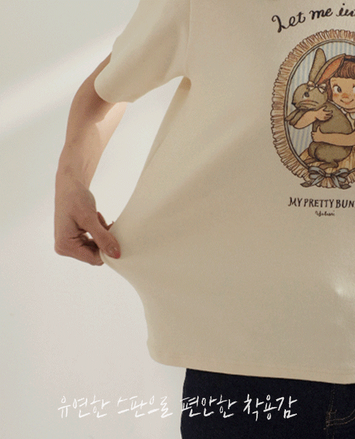 [겉기모] 레비타 소녀 프린팅 스판 반팔 티셔츠 [Free(55~66)]