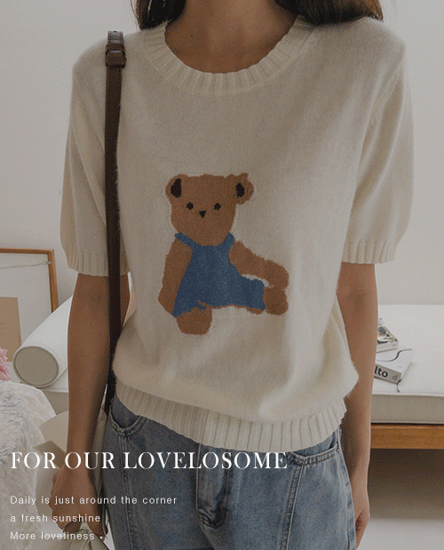 [울/비스코스함유] 크림 앙고라 테디 반팔 니트 [Free(55~66)]