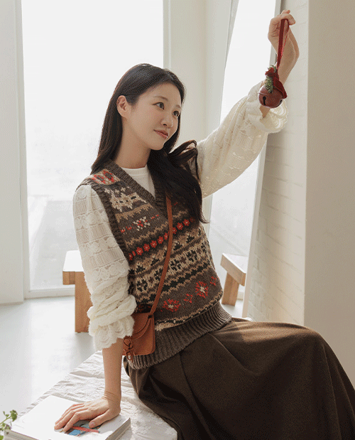 카오 노르딕 브이넥 니트 베스트 [Free(55~77)]