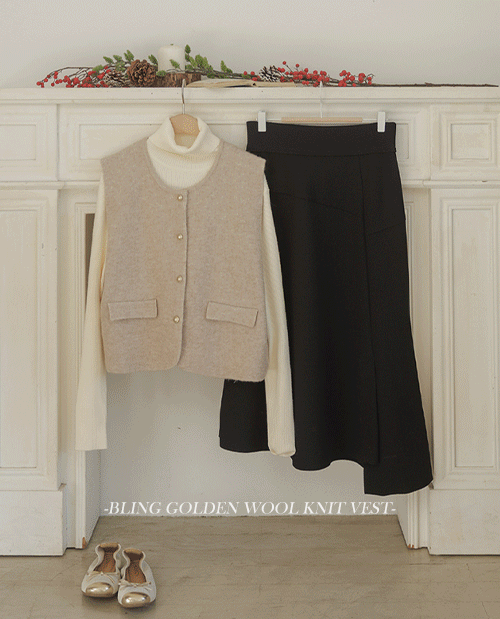 글리브 블링 골든 울 니트 베스트 [Free(55~77)]