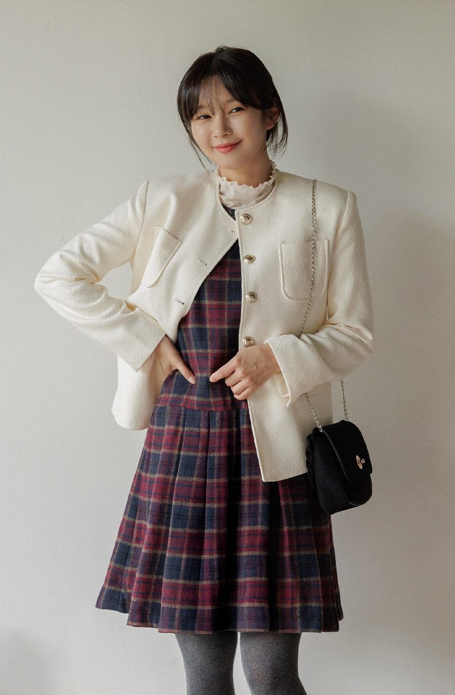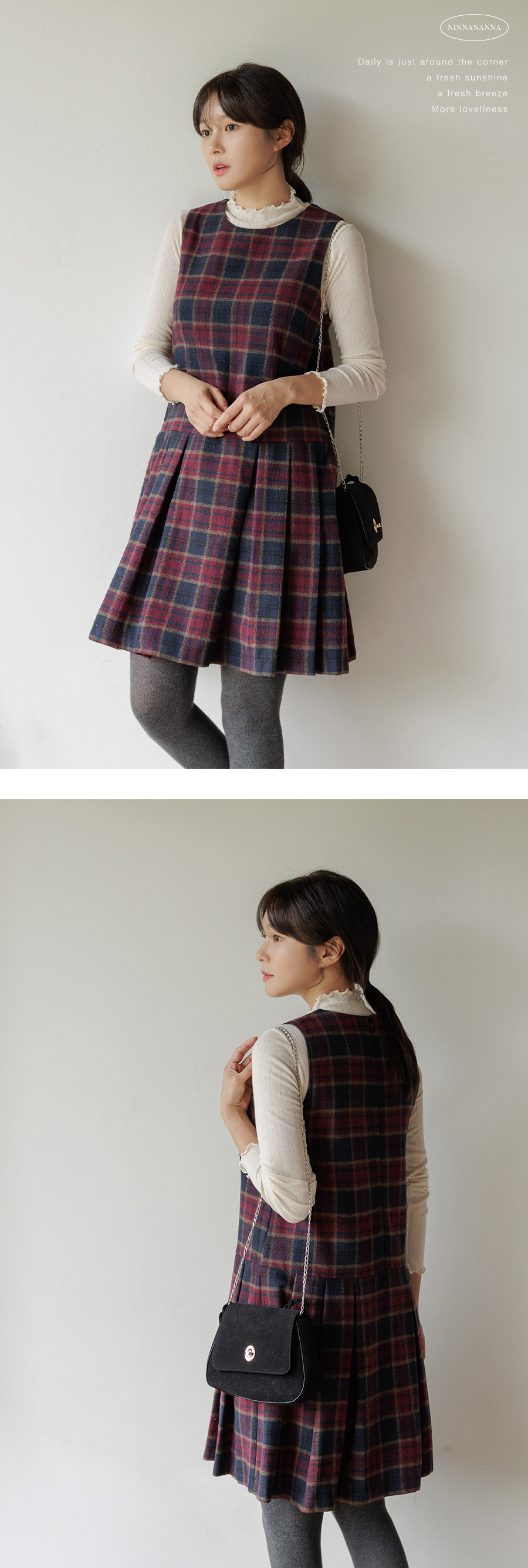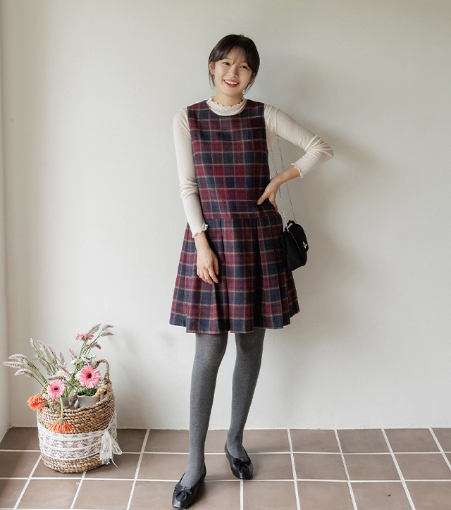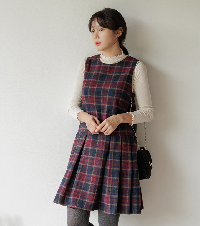 HOME > ALL > 레디프 체크 플리츠 미디 원피스 [Free(55~66)]
