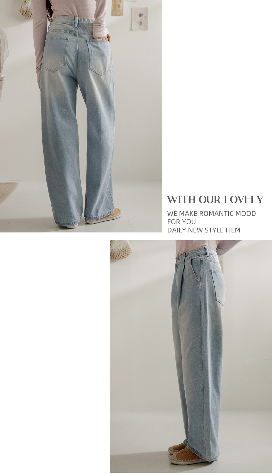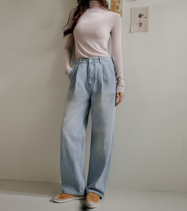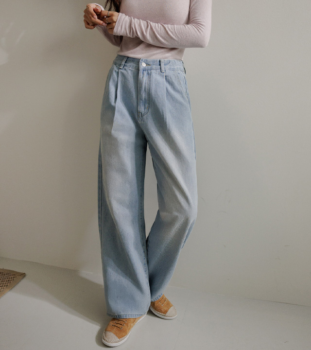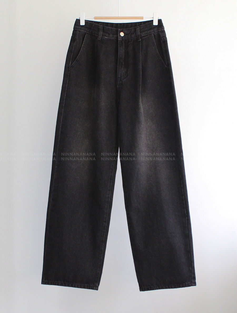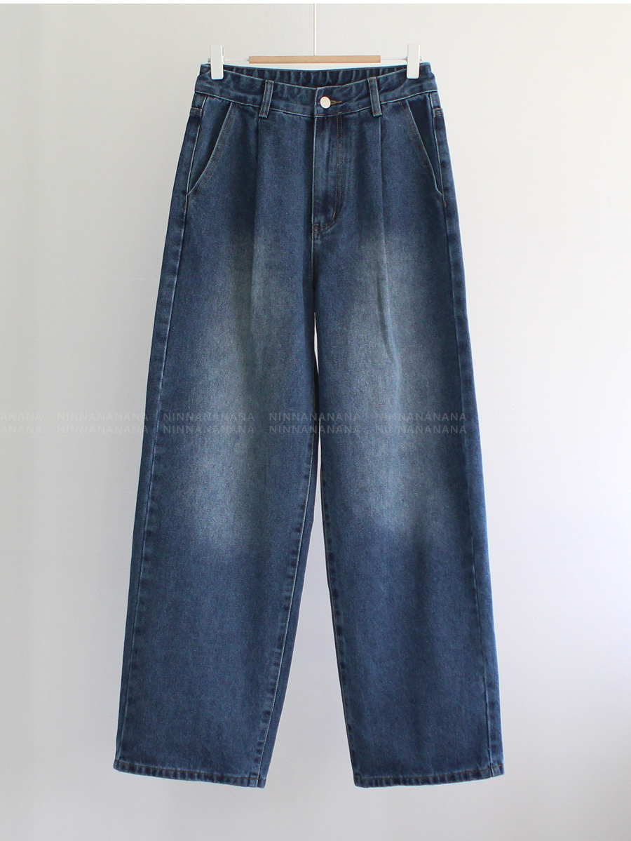 HOME > ALL > [숏기장/롱기장] 폰즈 앞 핀턱 워싱 와이드 데님 팬츠 [S-2XL]