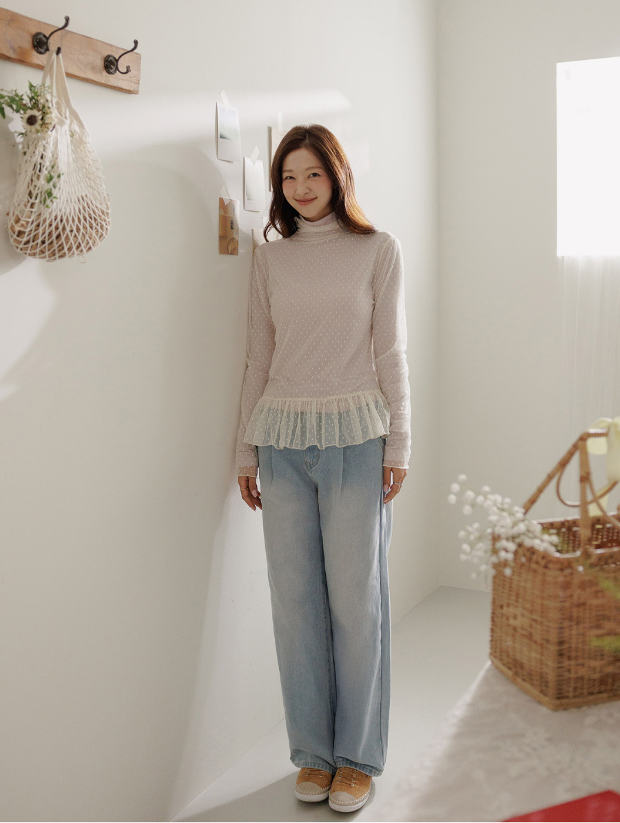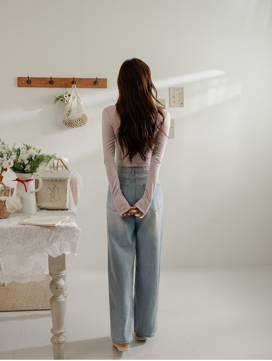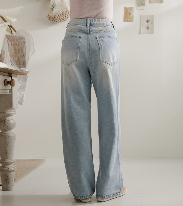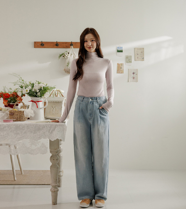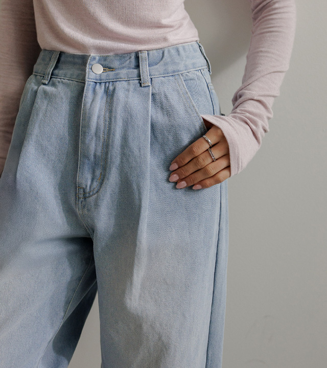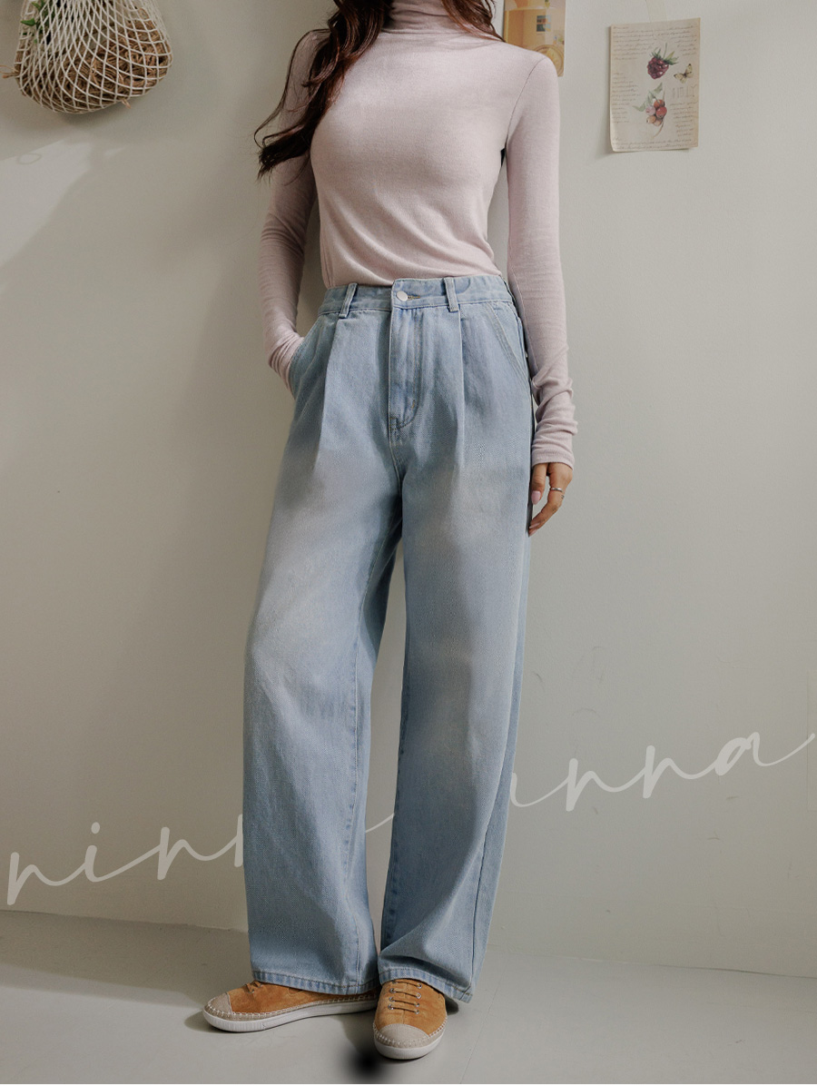 HOME > ALL > [숏기장/롱기장] 폰즈 앞 핀턱 워싱 와이드 데님 팬츠 [S-2XL]