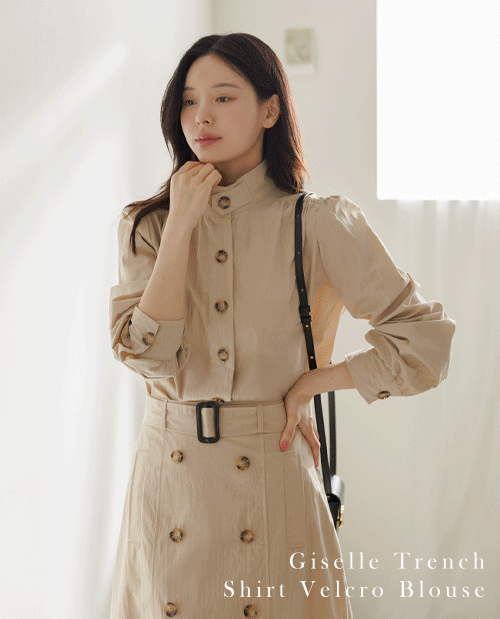 [SET가능] 지젤 트랜치 셔츠 벨크로 블라우스 [Free(55~66)]