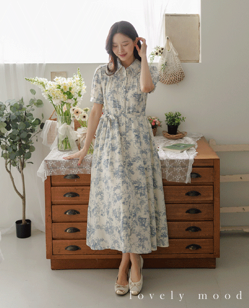 [허리끈SET] 베고니아 고급 나염 롱 원피스 [Free(55~66)]