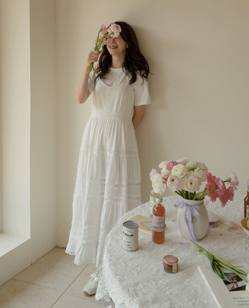 유네아 펀칭 플레어 나시 원피스 [Free(55~66)]
