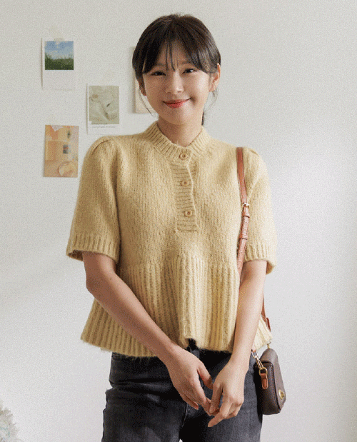 플레닝 카라 니트 반팔 가디건 [Free(55~66)]
