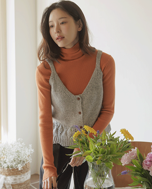 은은한 펀칭 짜임에 부드러운 울 터치감! 레이어드가 예쁜 러블리 아이템:)