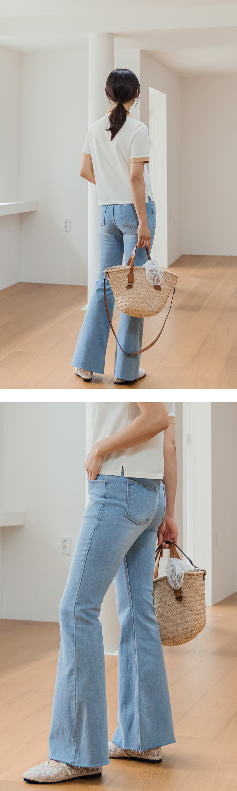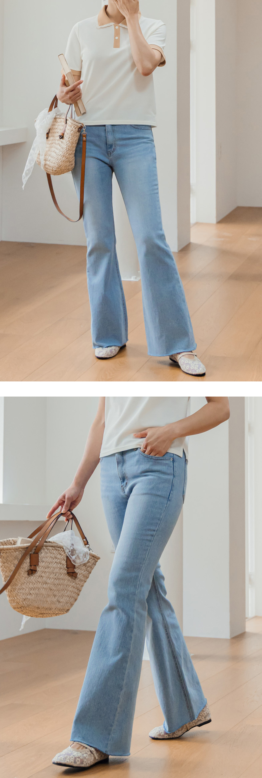 부츠컷 데님 팬츠 보여드릴게요.