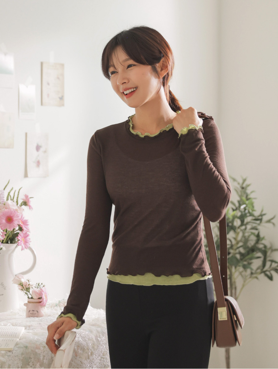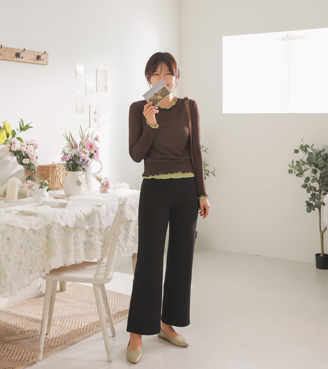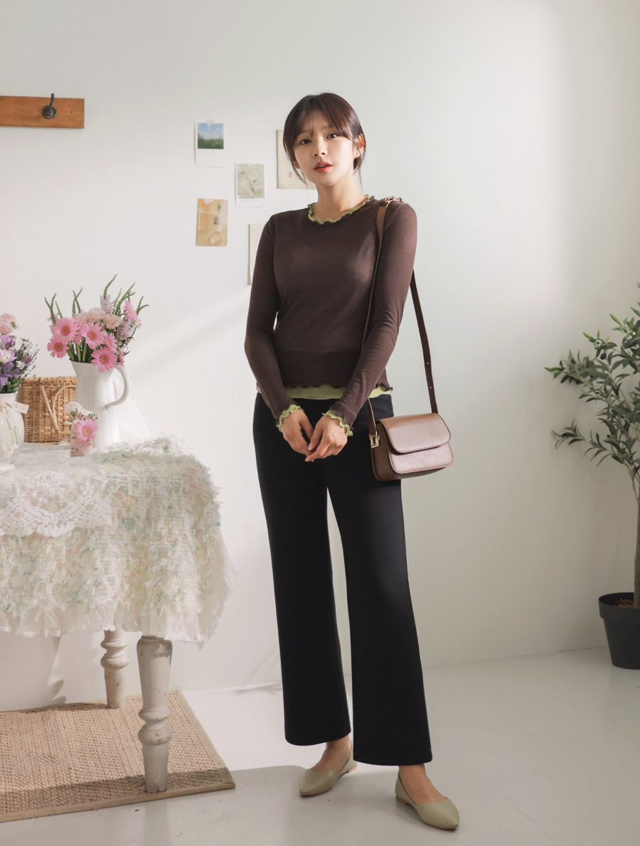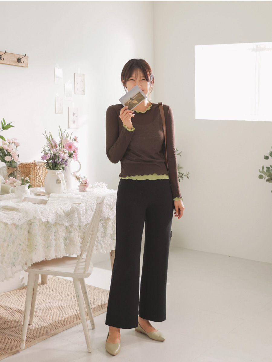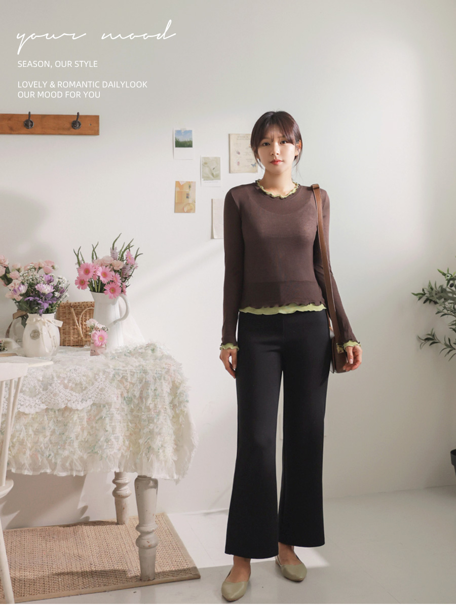 쫀쫀한 스판감에 배색 프릴 디테일로 세련된 무드 두배♡