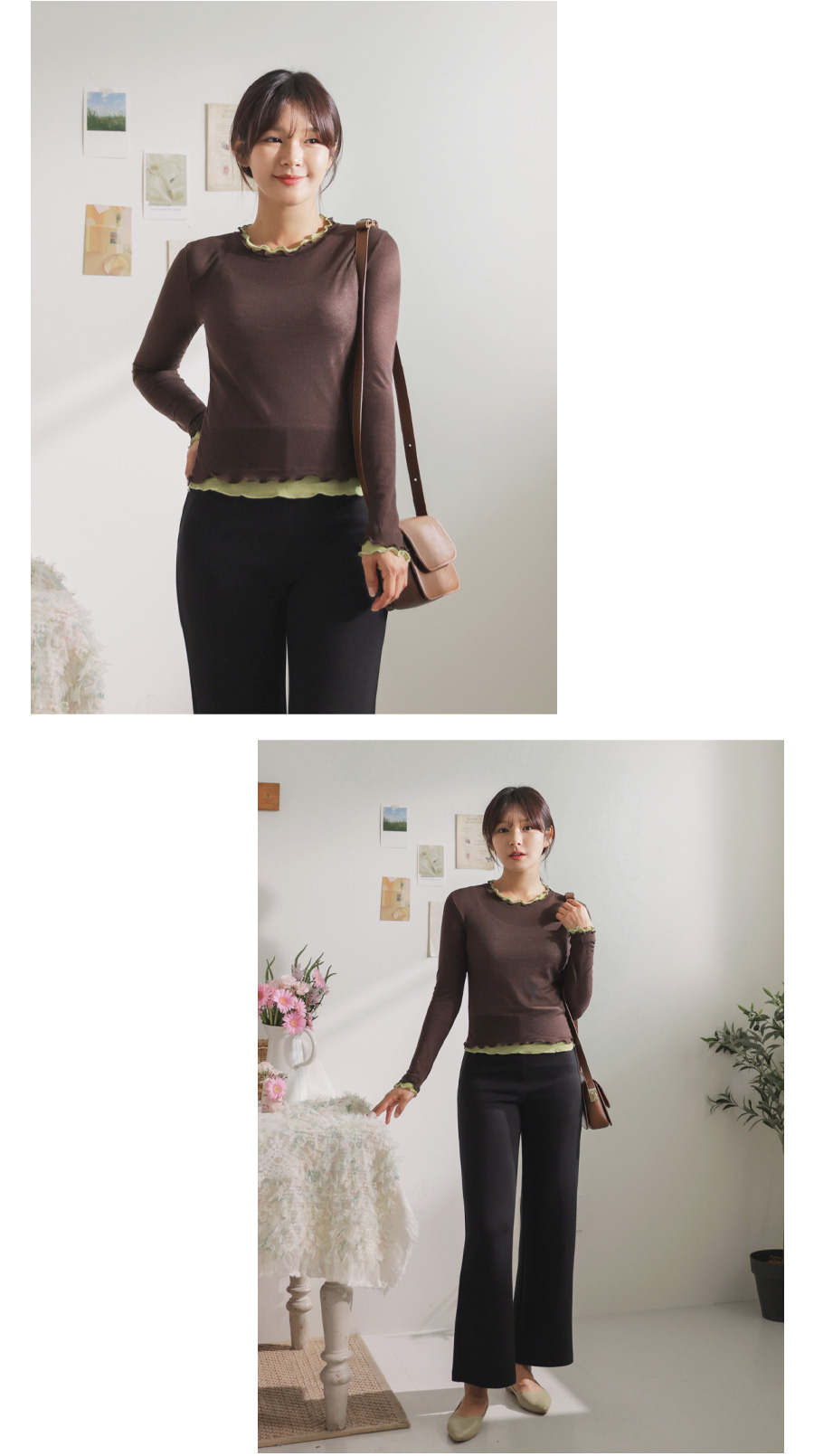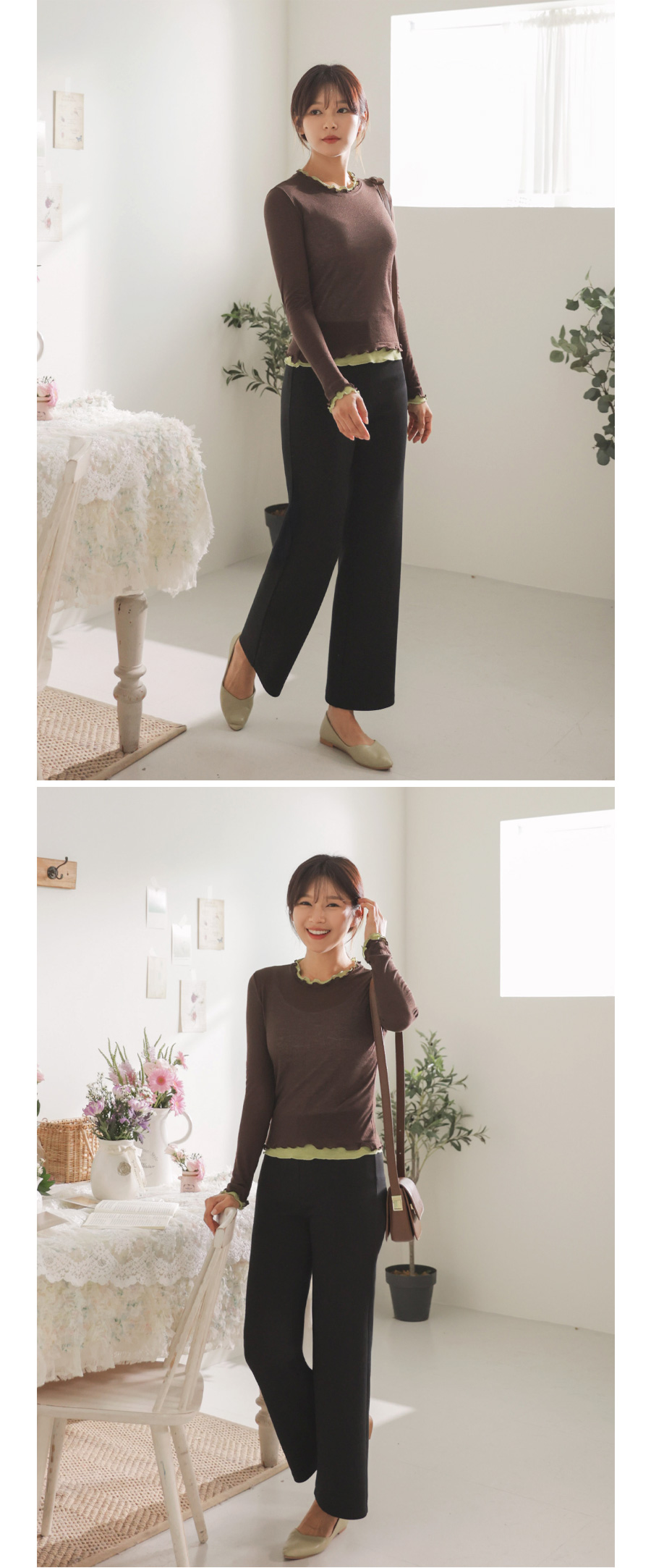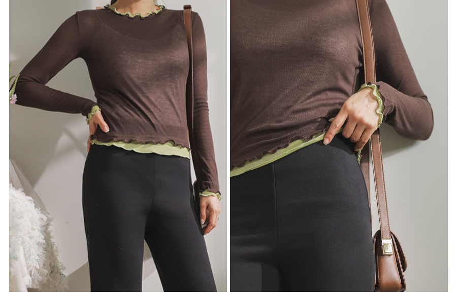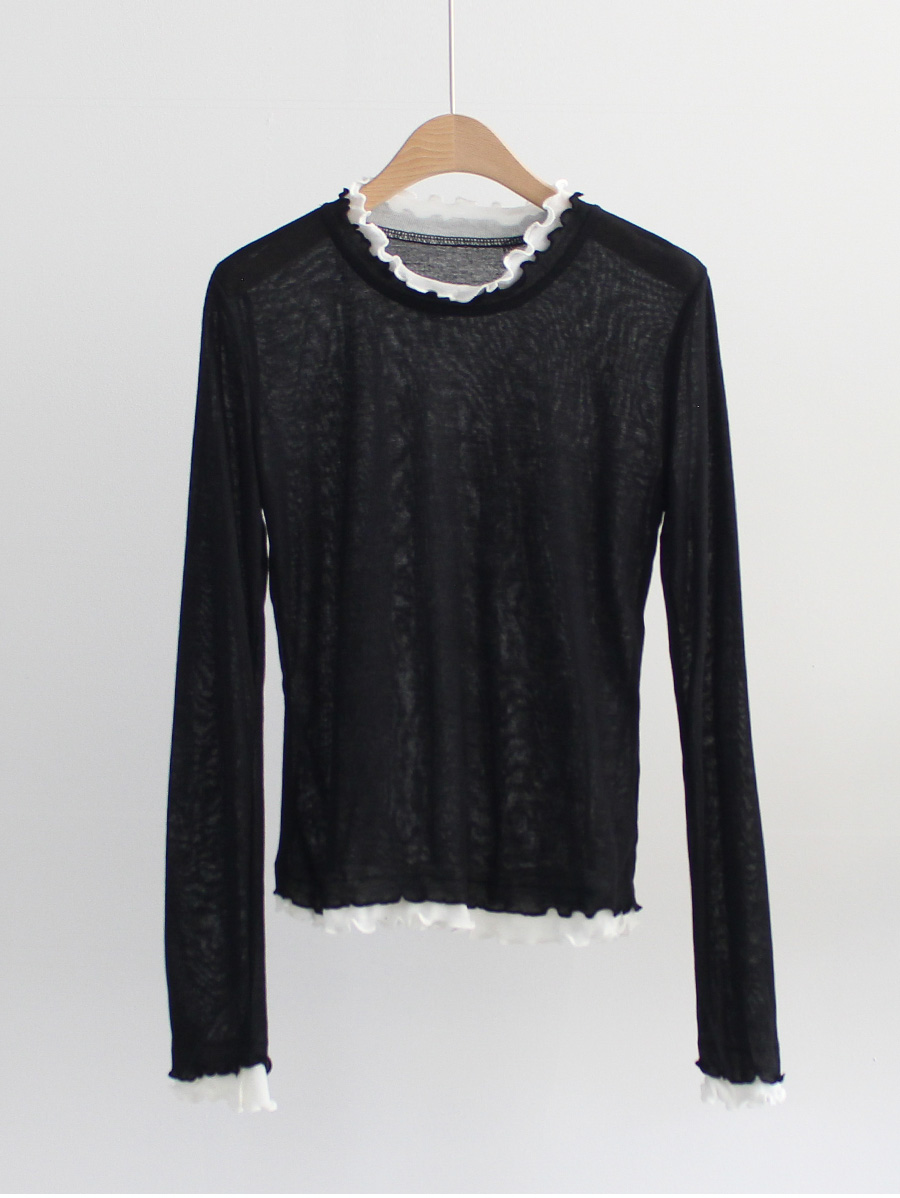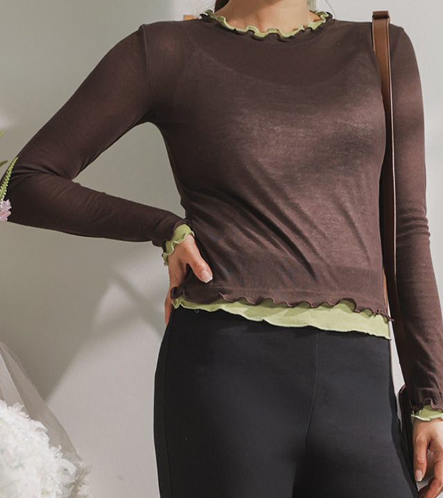 쫀쫀한 스판감에 배색 프릴 디테일로 세련된 무드 두배♡