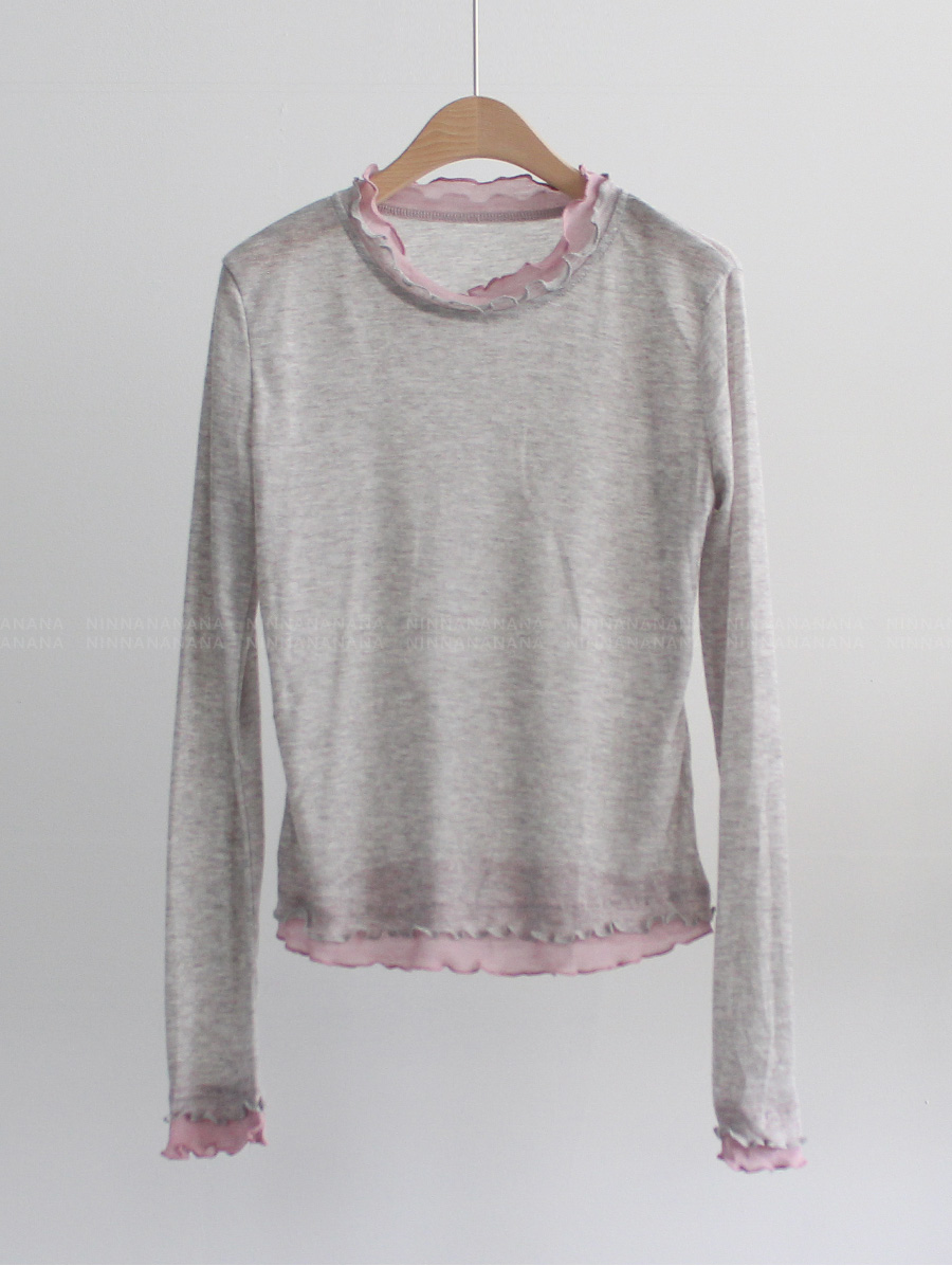 HOME > ALL > [주문폭주!!♡][NINNA] 로메인 배색 물결 스판 티셔츠 [Free(55~66)]