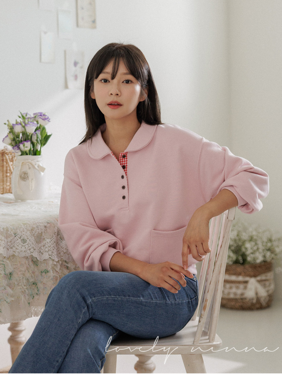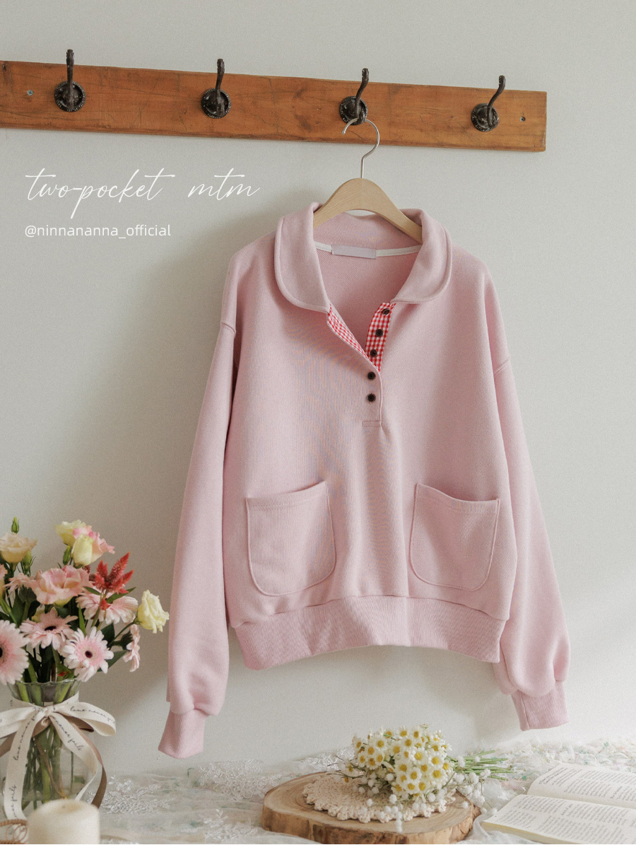 HOME > ALL > 도레 둥근카라 투포켓 체크배색 맨투맨 [Free(55~66)]