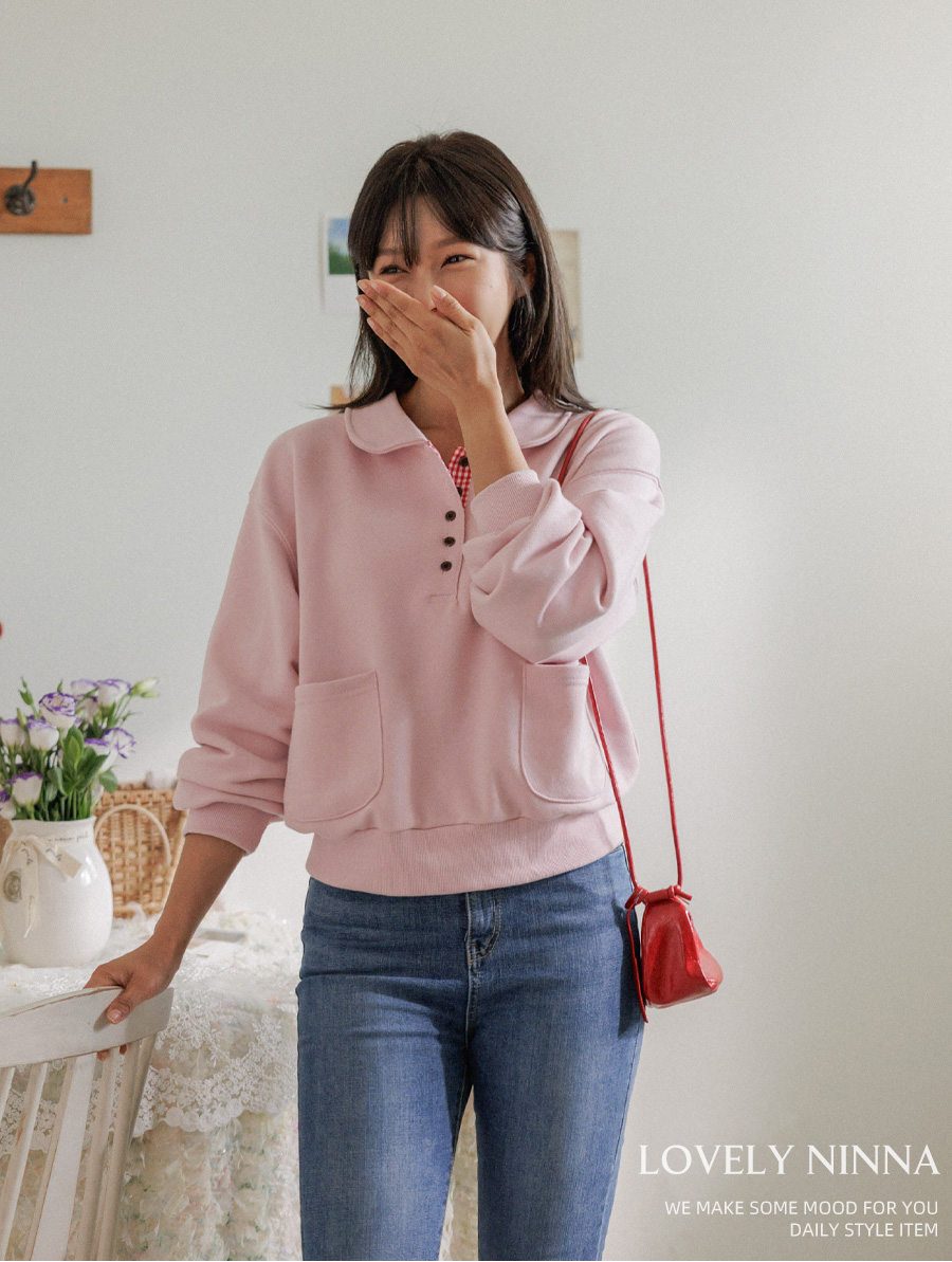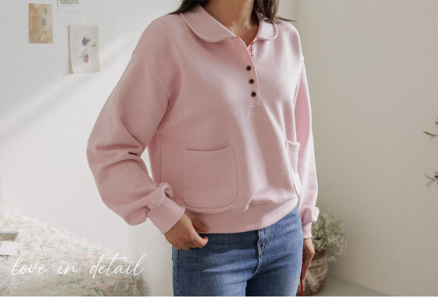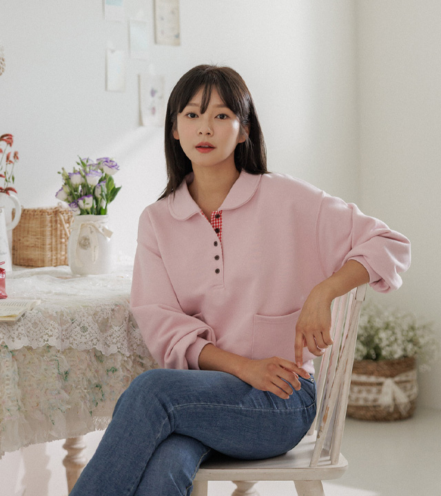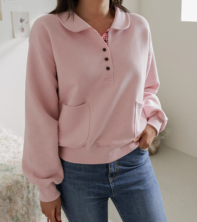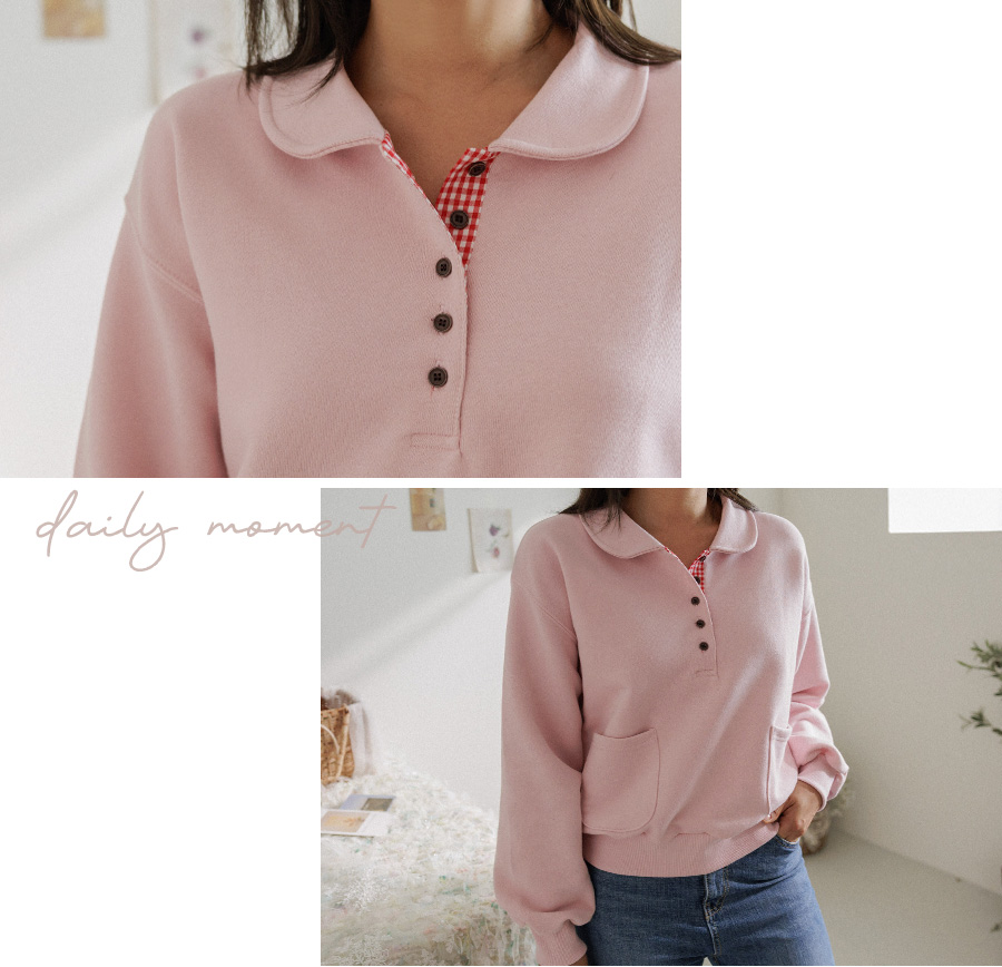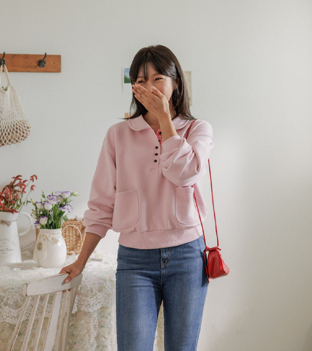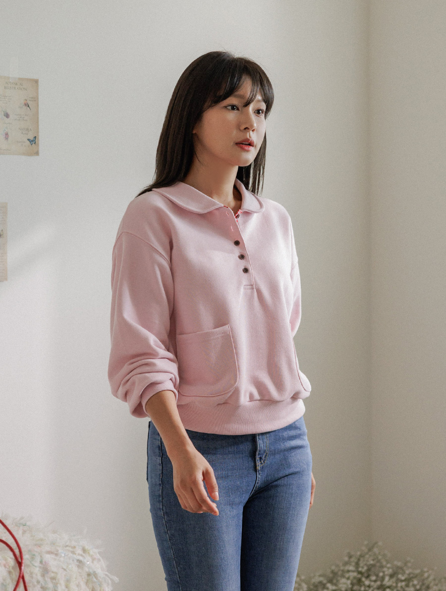 담아낸 카라 버튼 맨투맨 보여드릴게요.