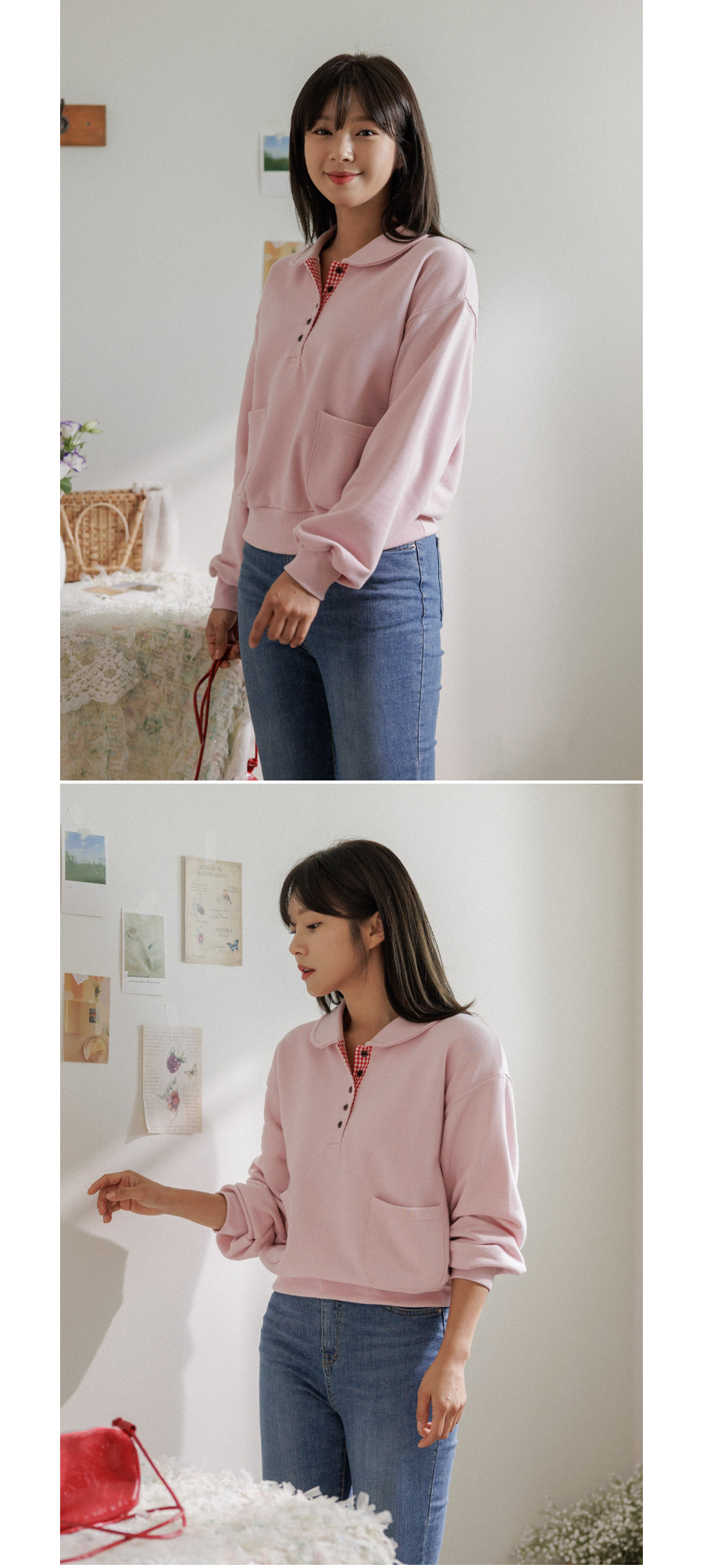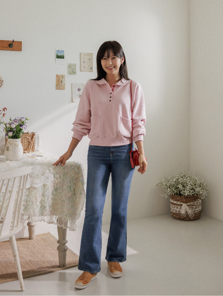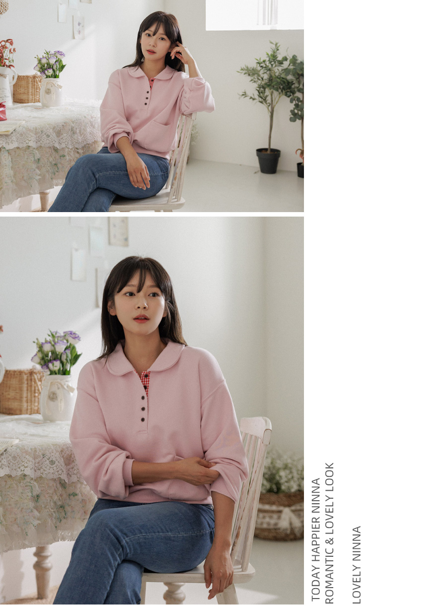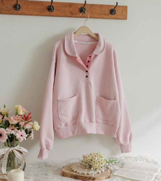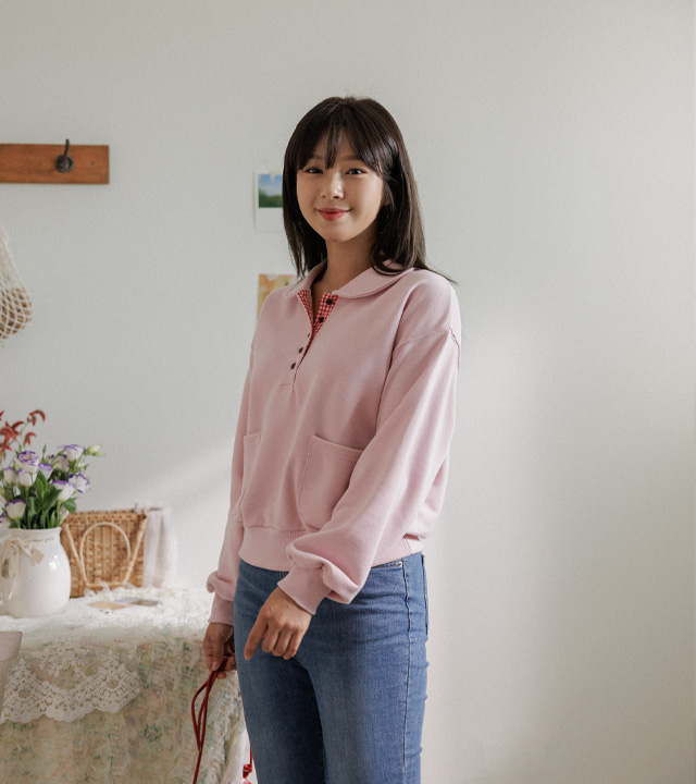 담아낸 카라 버튼 맨투맨 보여드릴게요.