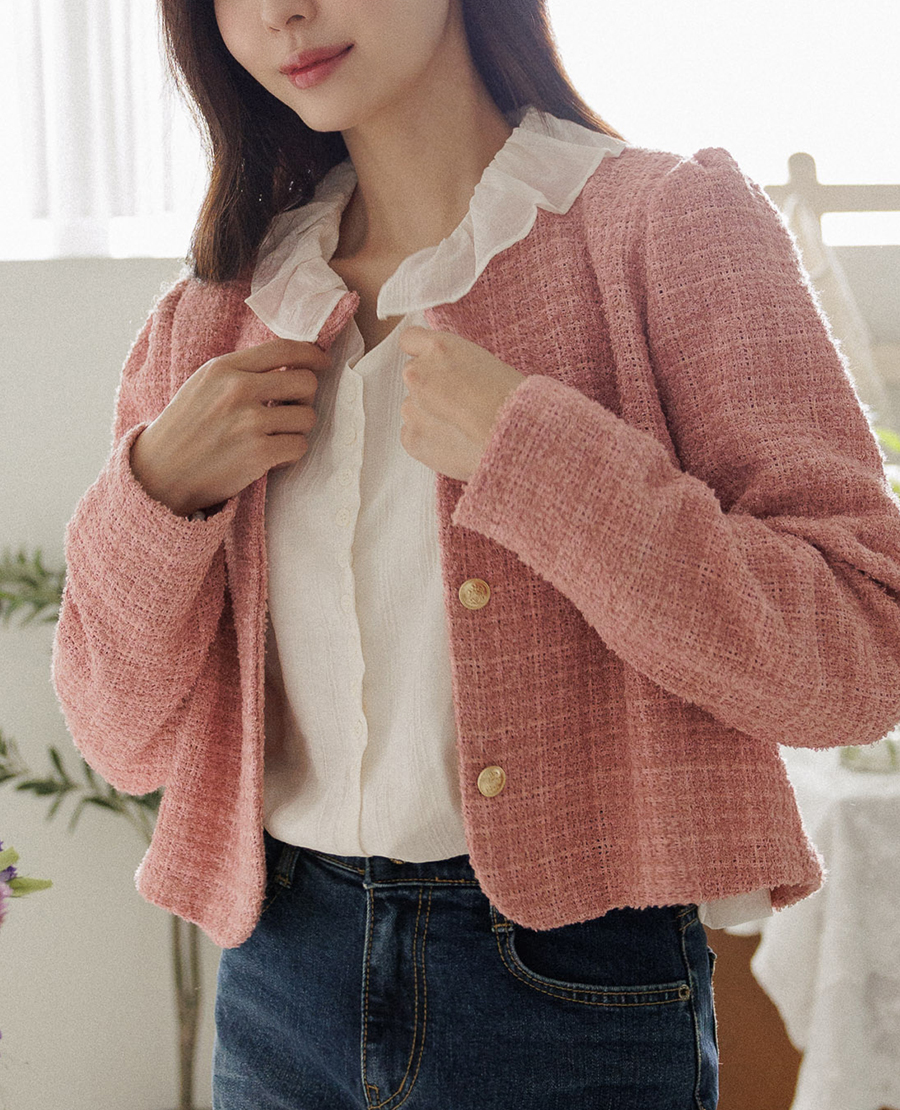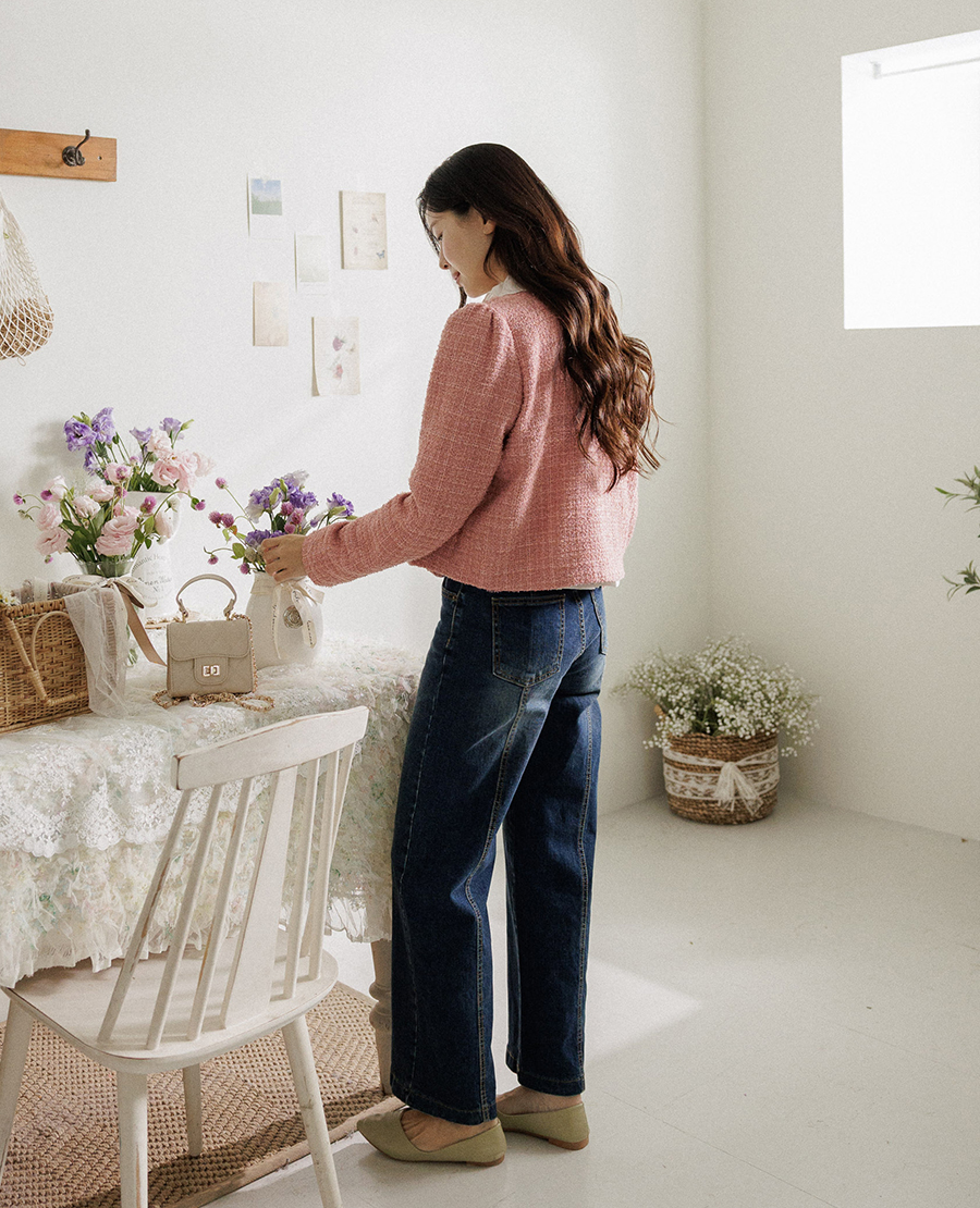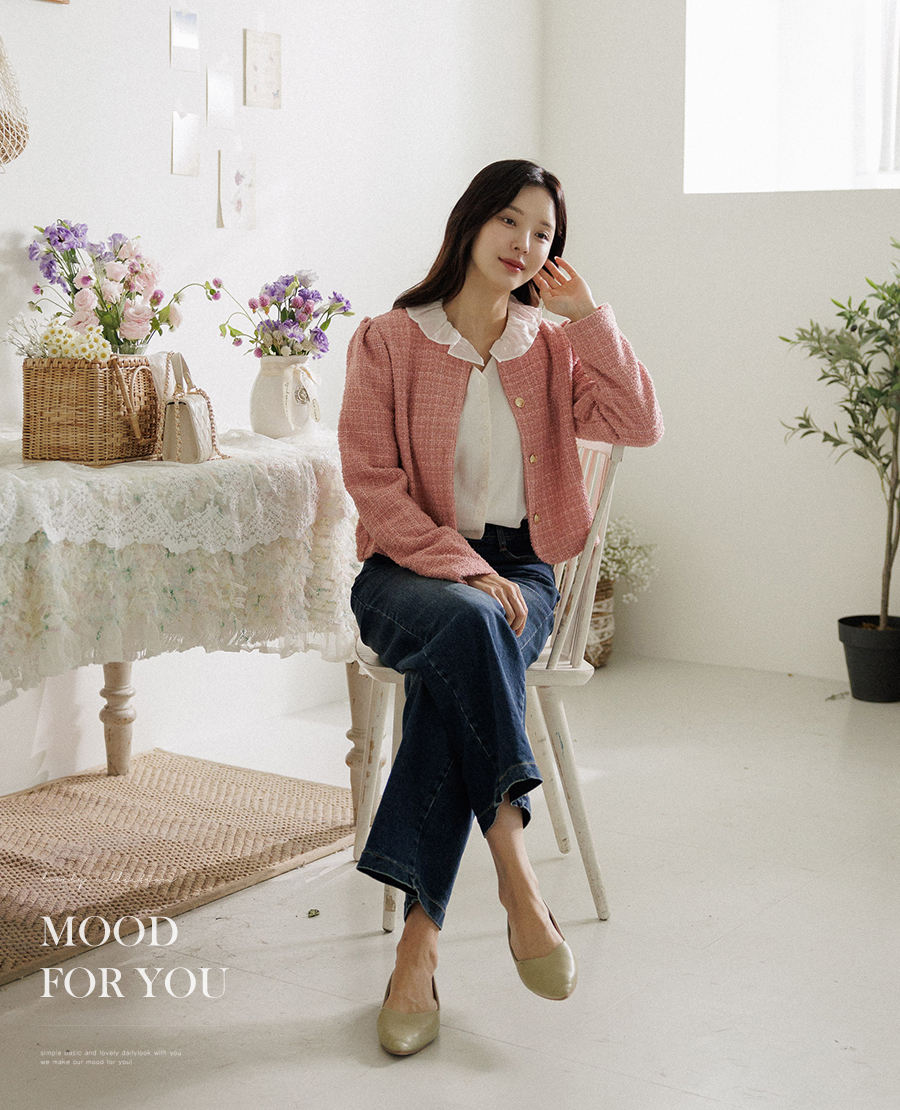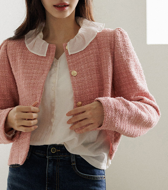 동시에 잡아주는 트위드 자켓이에요.