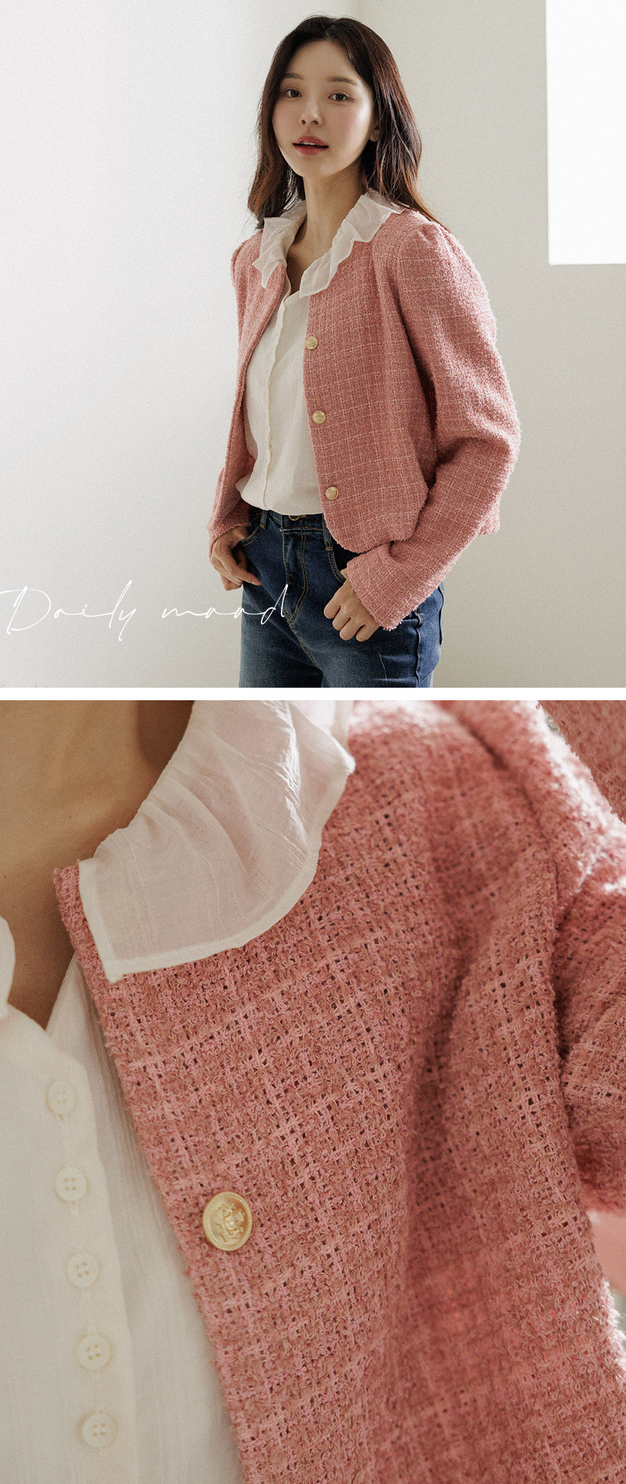 트위드 특유의 고급스러움과 골드버튼으로 세련된 무드♡