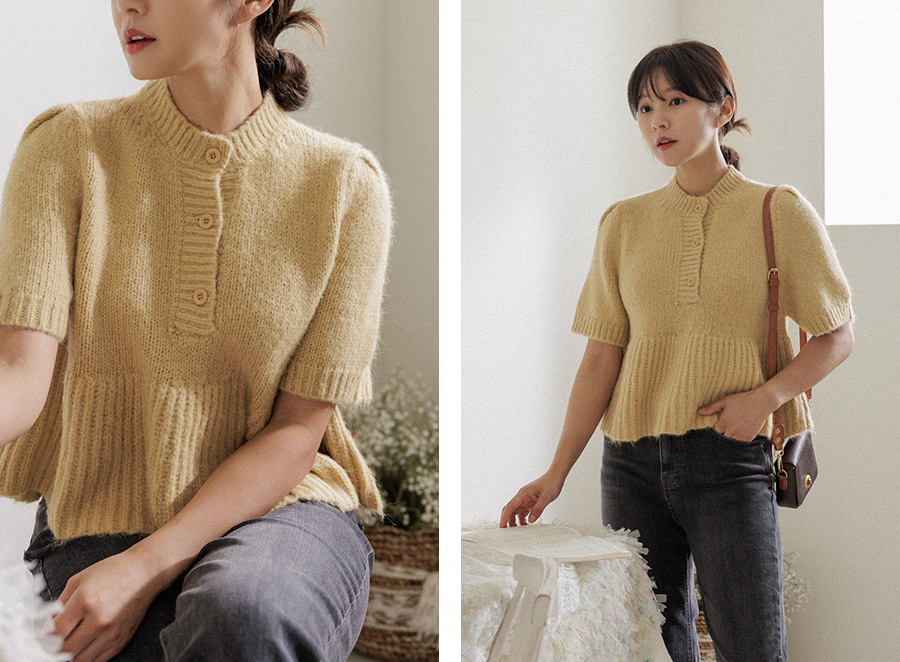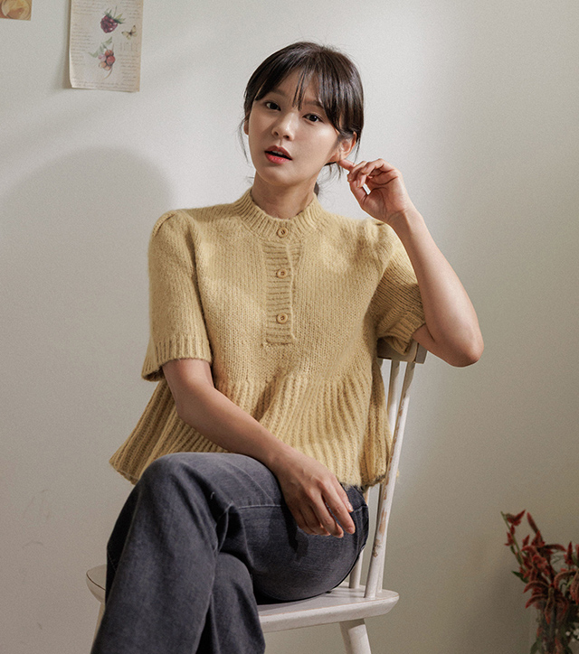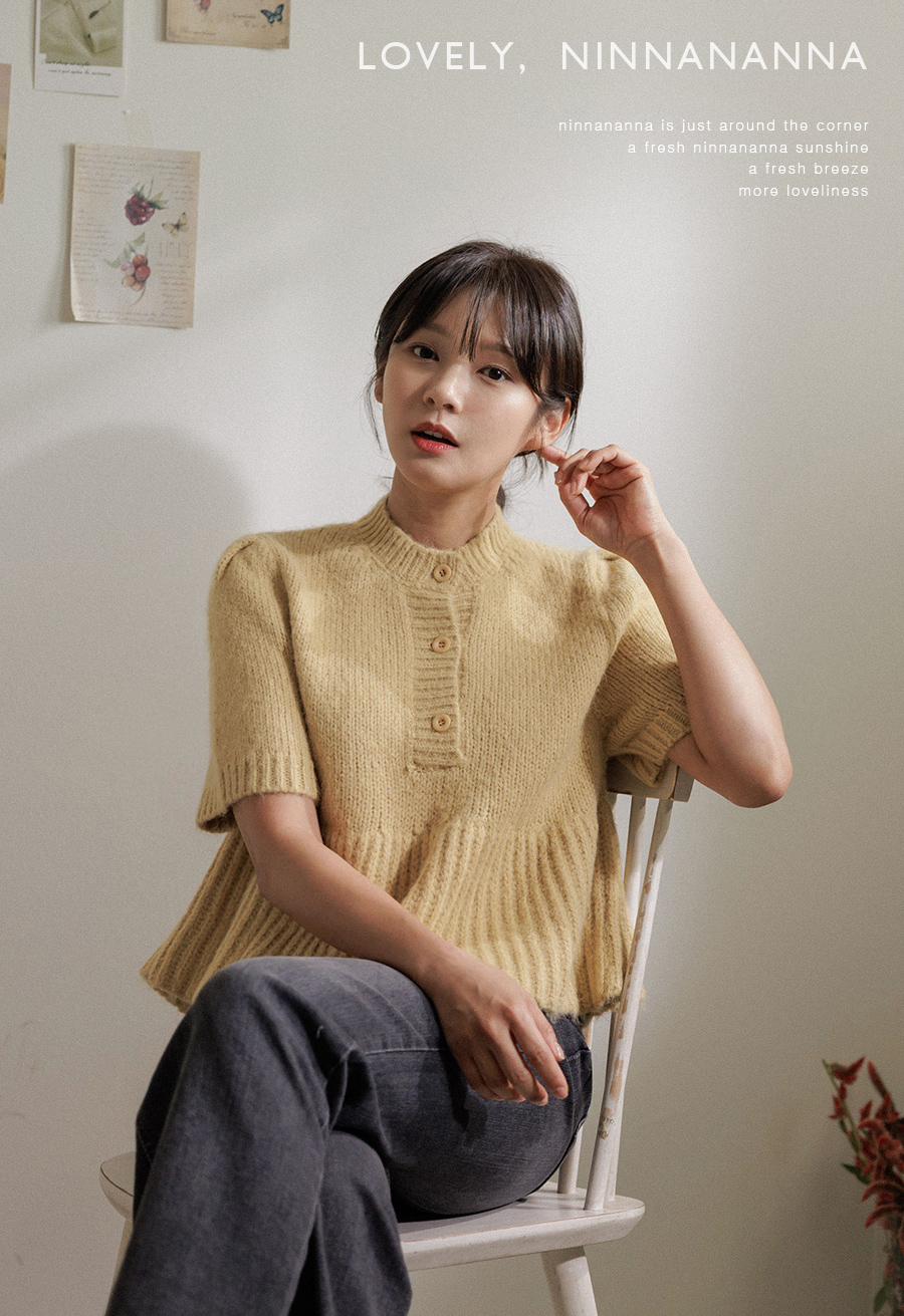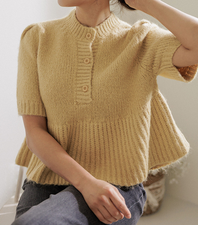 HOME > ALL > 버터바 탄탄유연 퍼프 프릴 반팔 니트 [Free(55~66)]