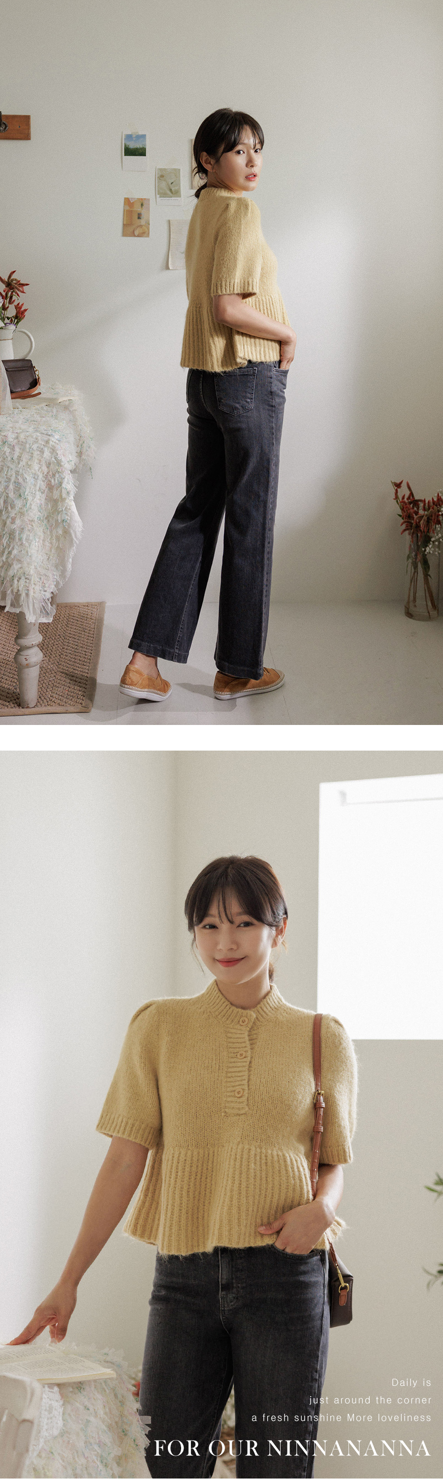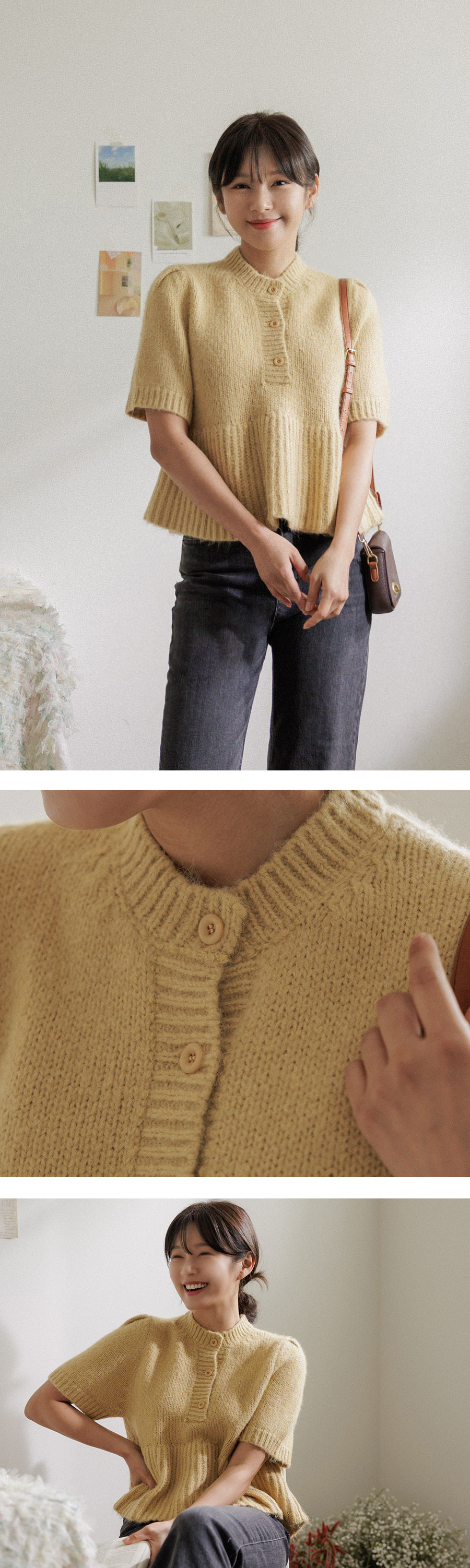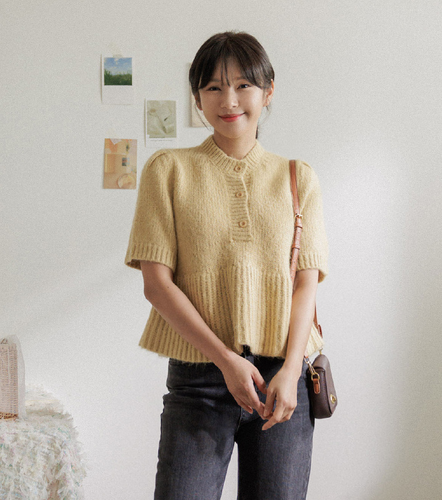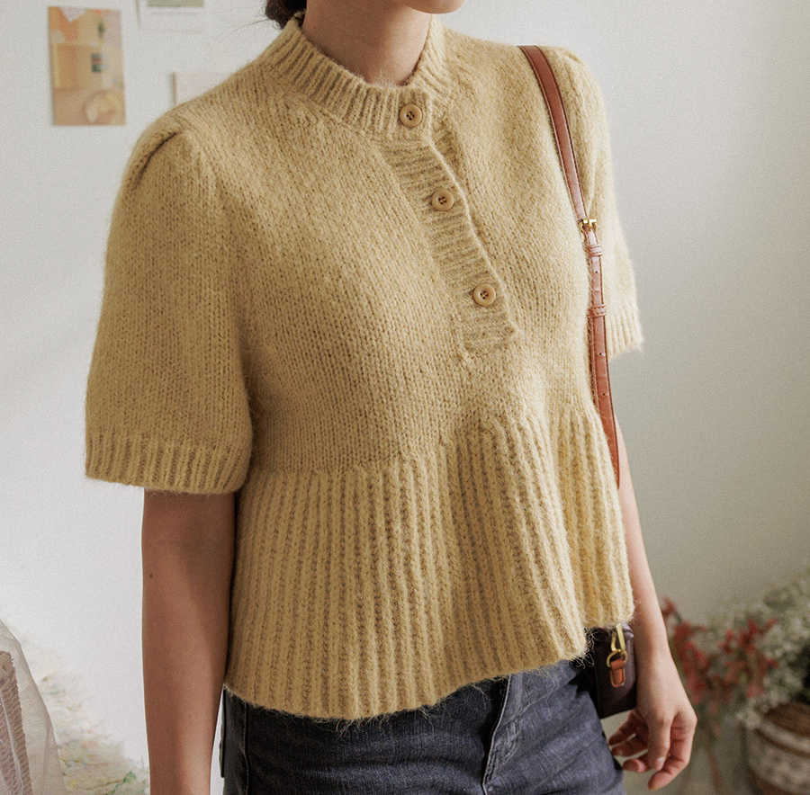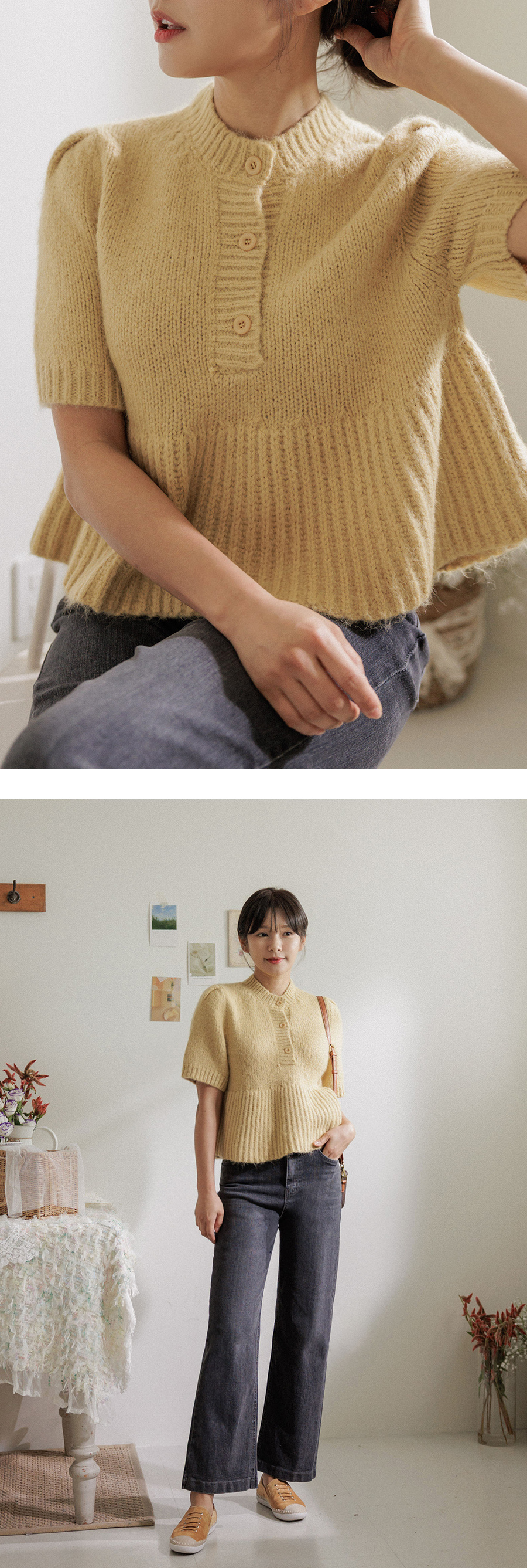 버터바 탄탄유연 퍼프 프릴 반팔 니트 [Free(55~66)]