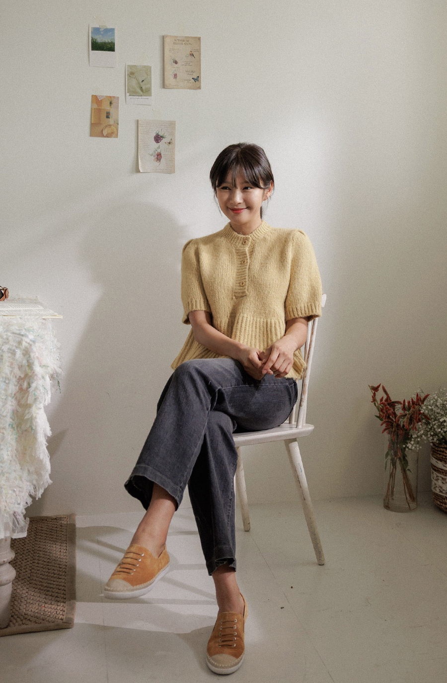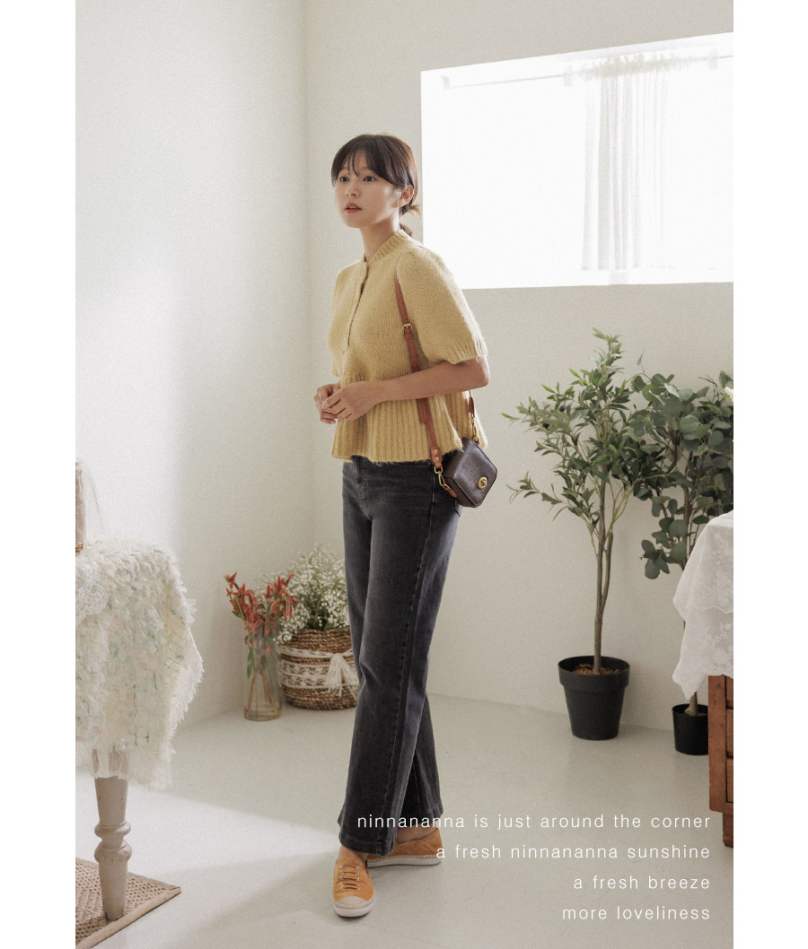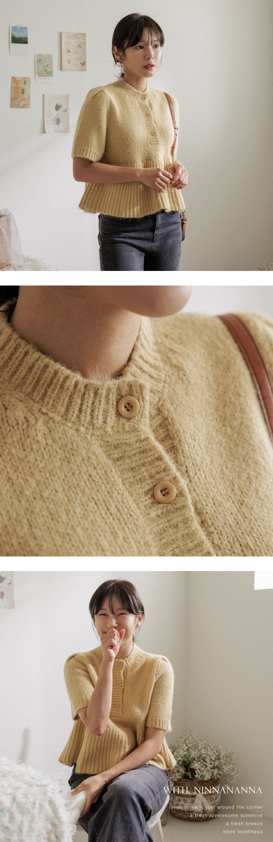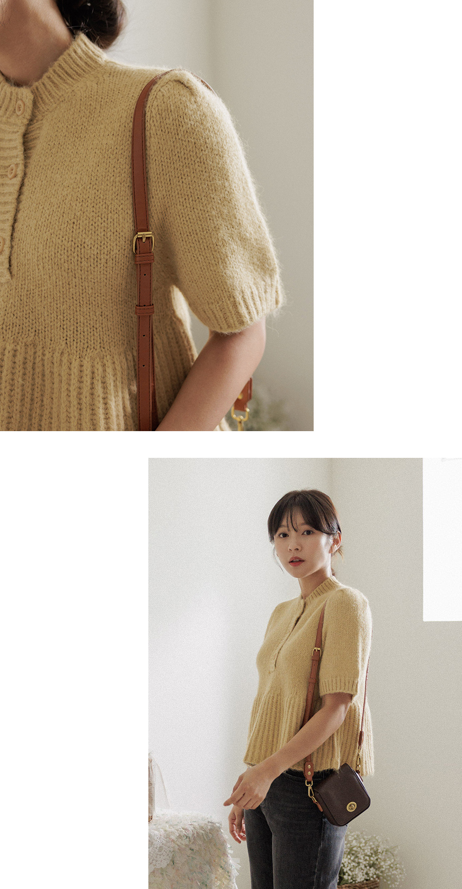 버터바 탄탄유연 퍼프 프릴 반팔 니트 [Free(55~66)]