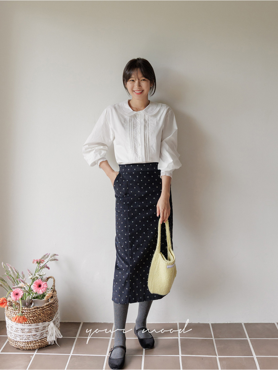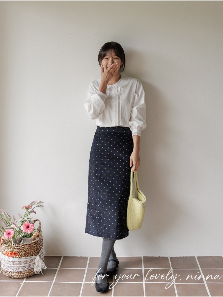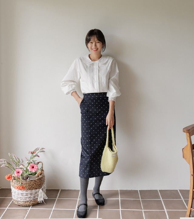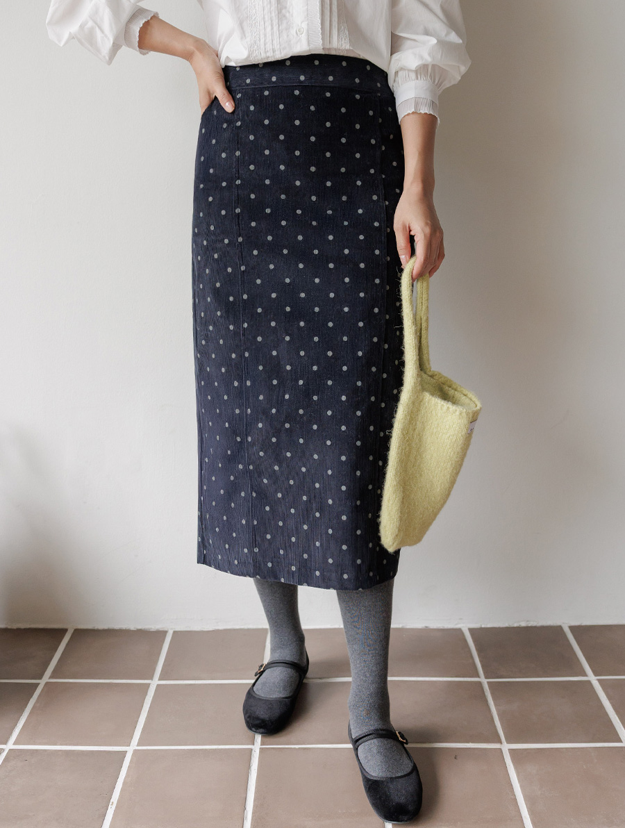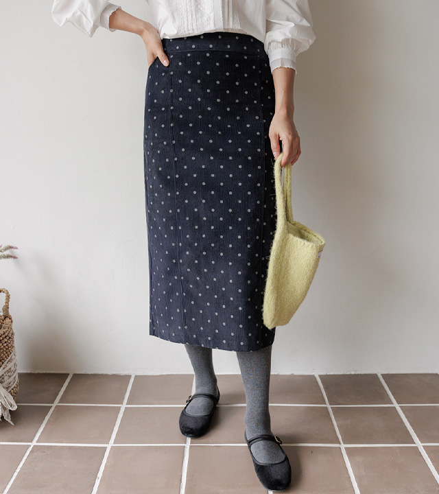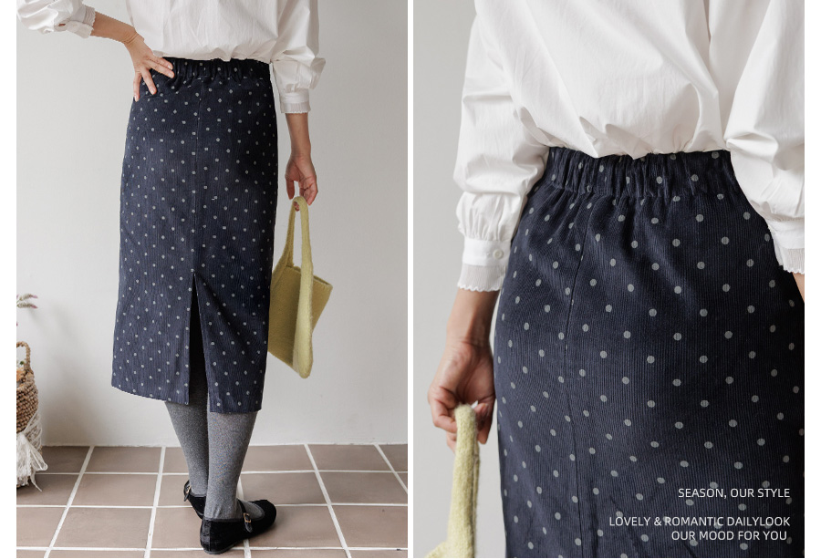 HOME > ALL > [뒷밴딩] 샌더린 도트 뒷트임 롱 스커트 [Free(55~66)]