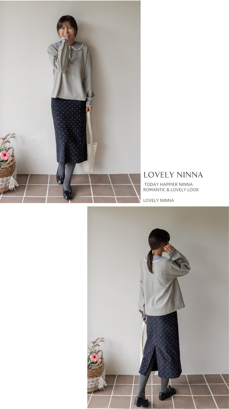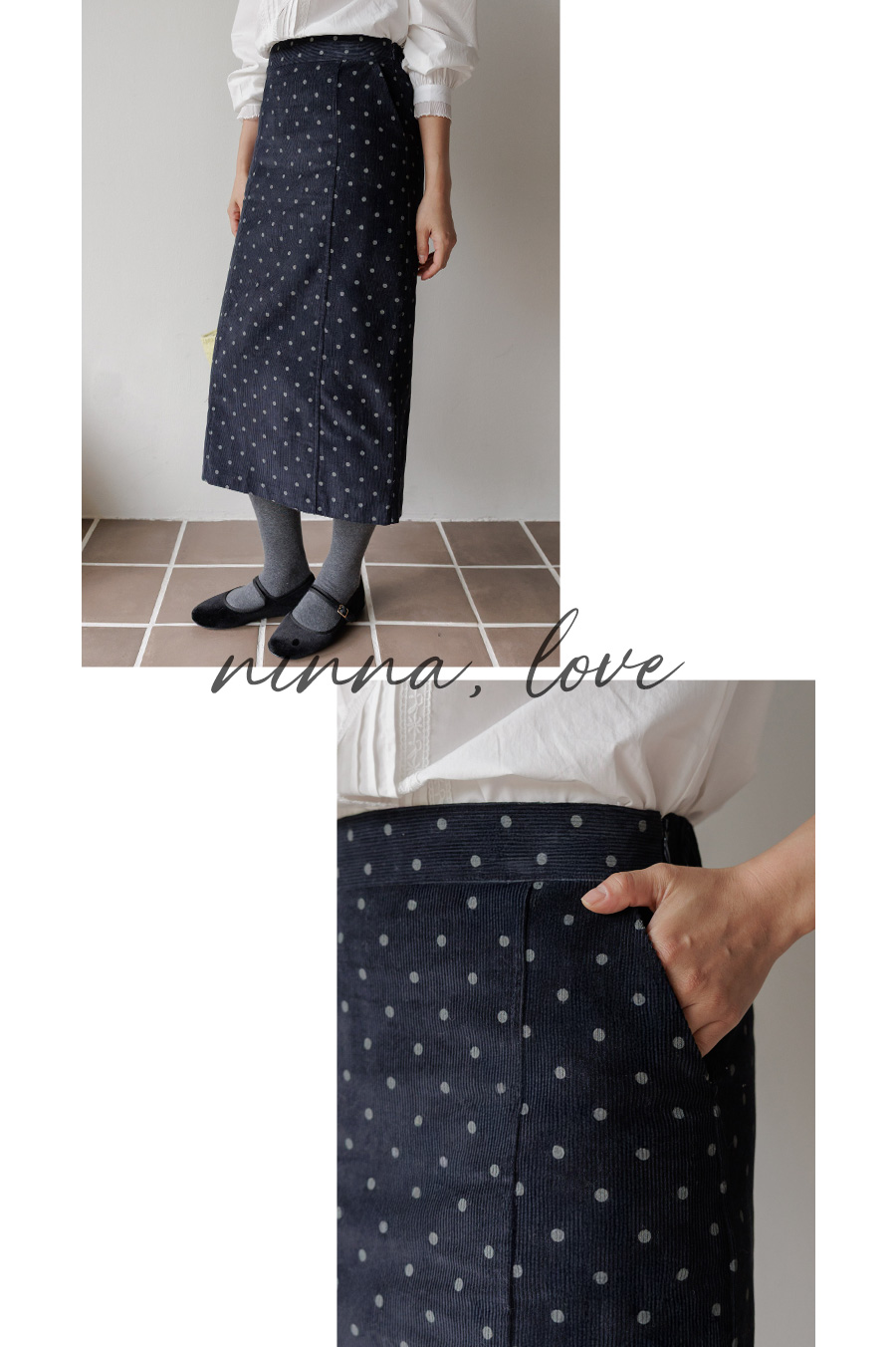 잔잔한 도트 패턴을 더해 여성스럽고