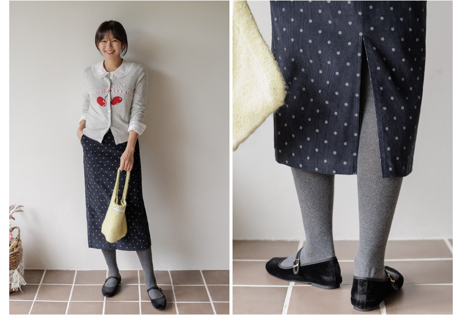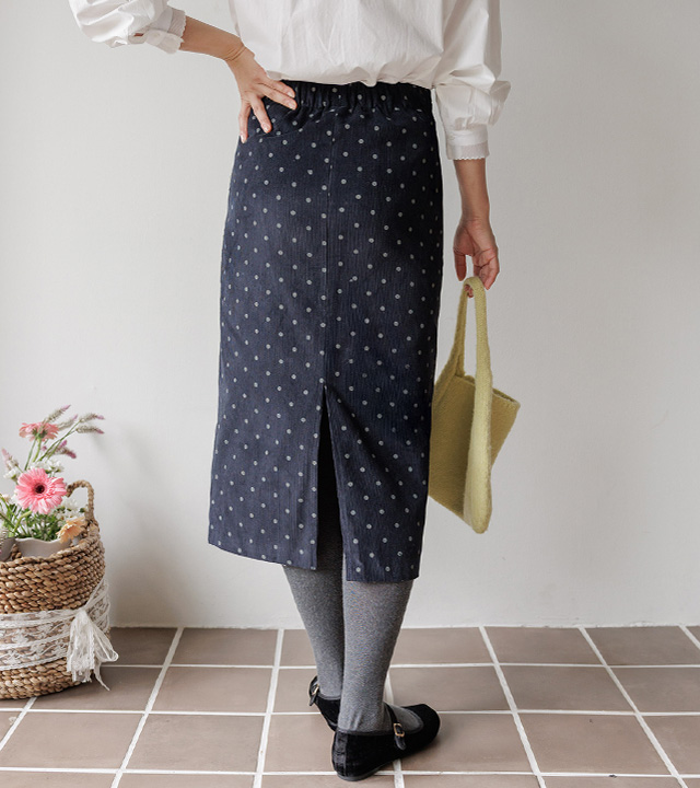 [뒷밴딩] 샌더린 도트 뒷트임 롱 스커트 [Free(55~66)]
