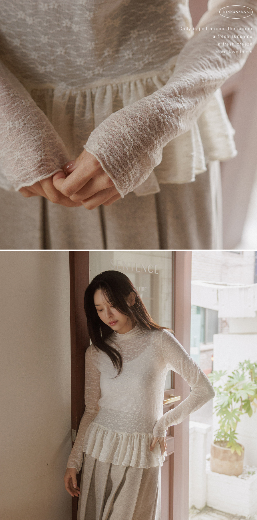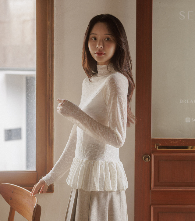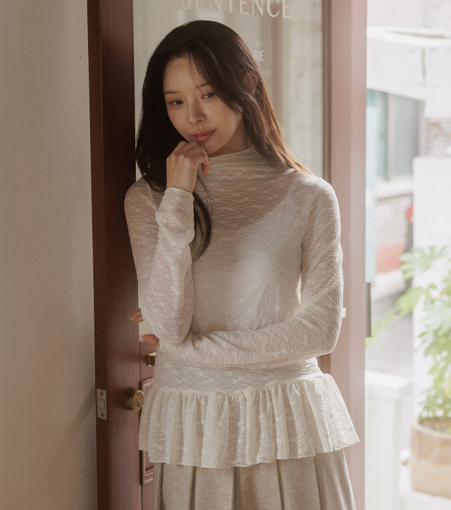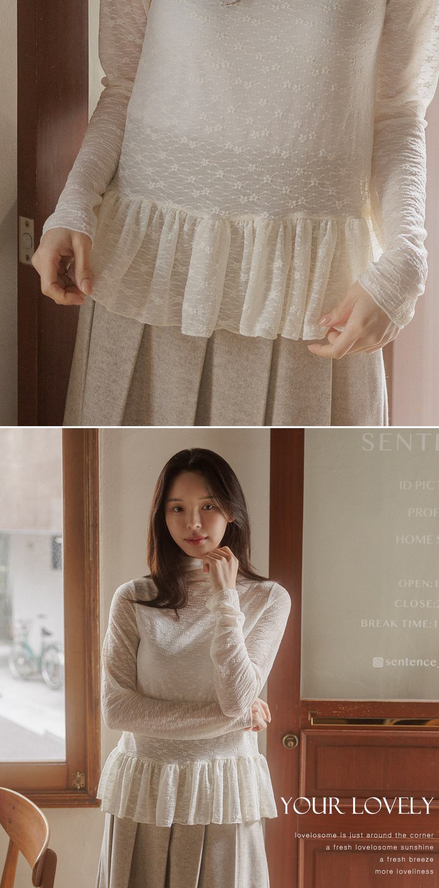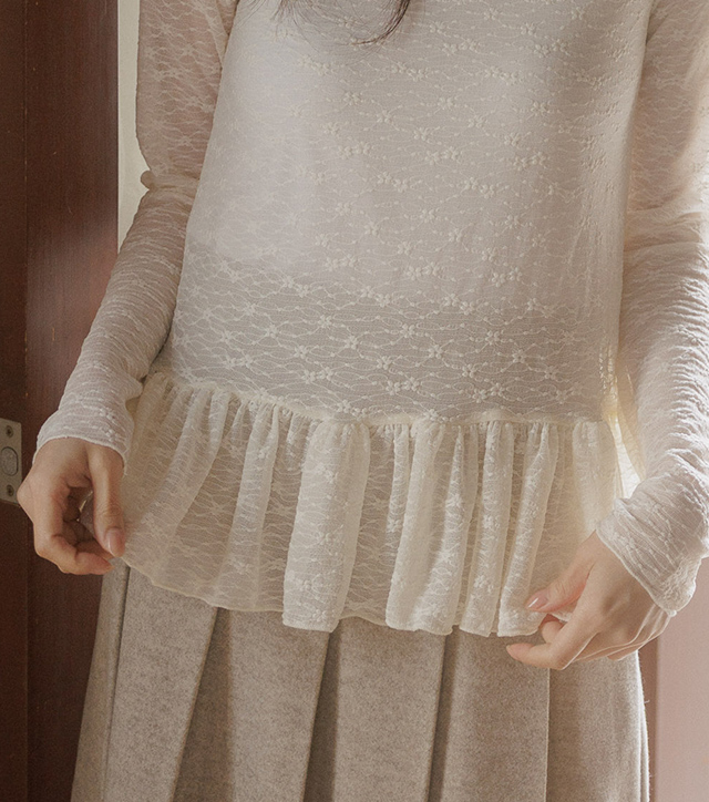 HOME > ALL > 요안나 밑단 프릴 레이스 블라우스티 [Free(55~66반)]