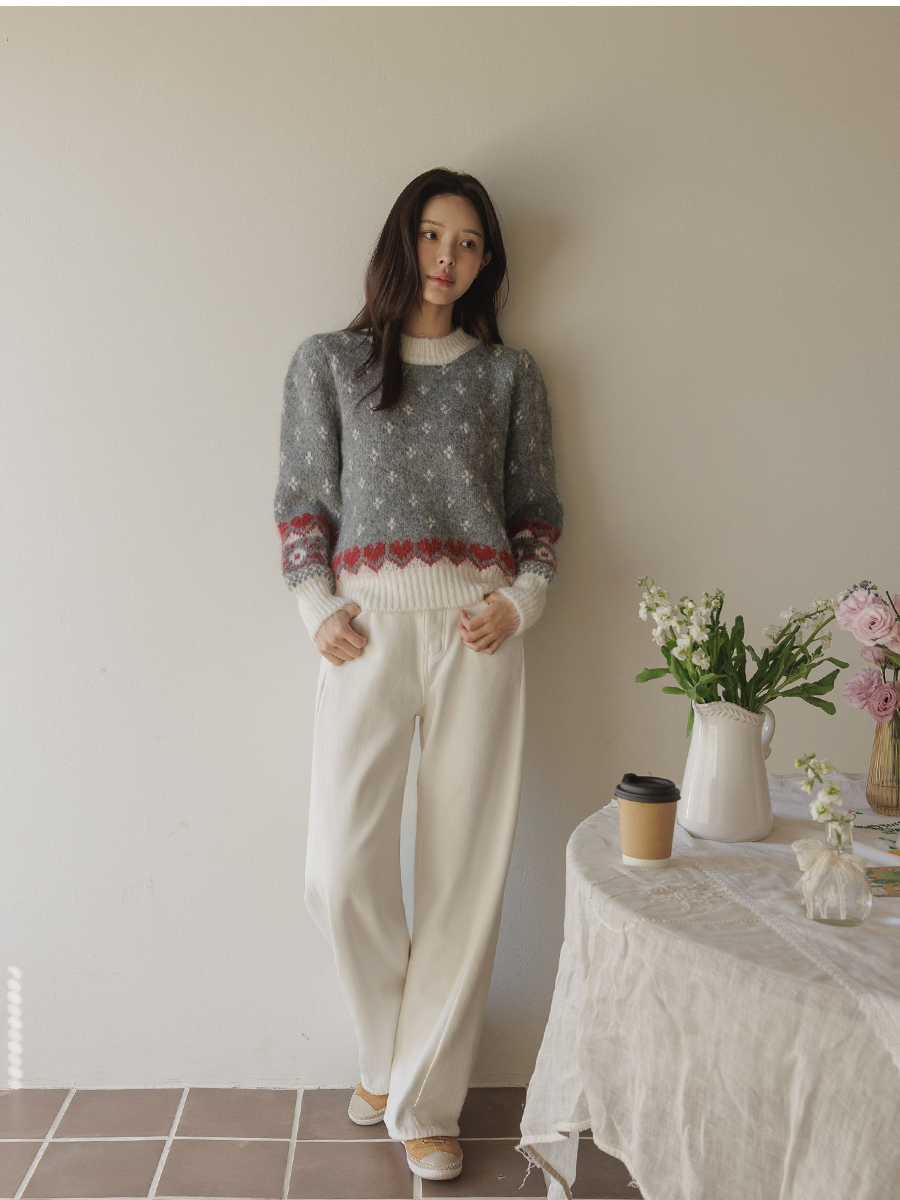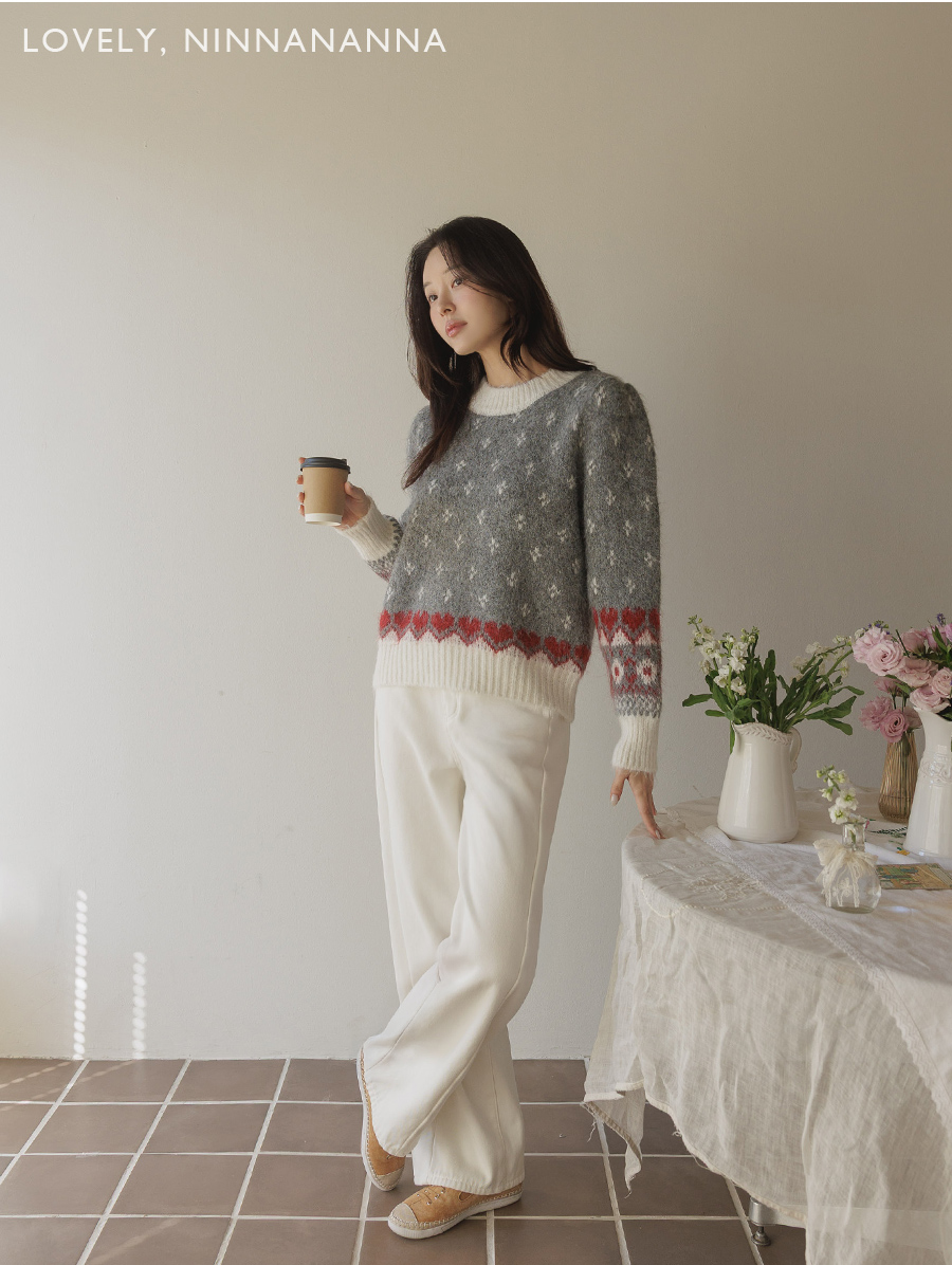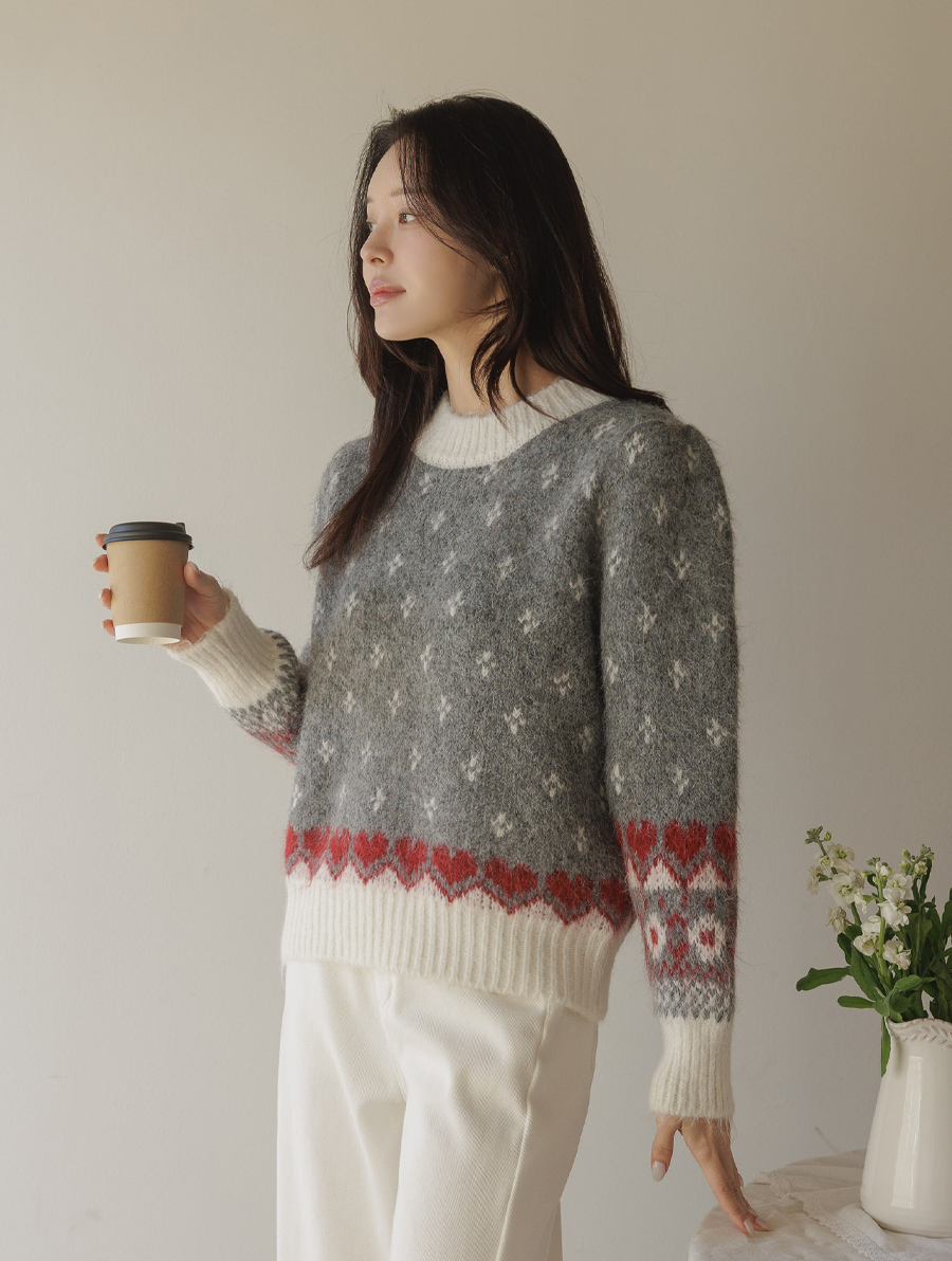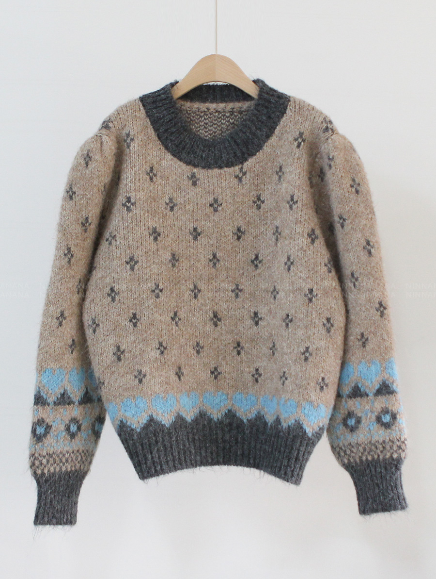 HOME > ALL > 로브네 하트 노르딕 숄더 퍼프 니트 [Free(55~66)]