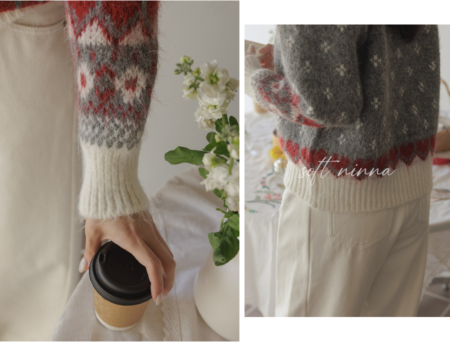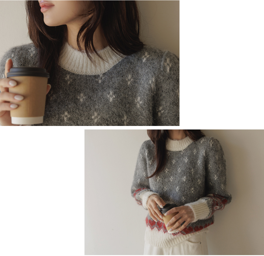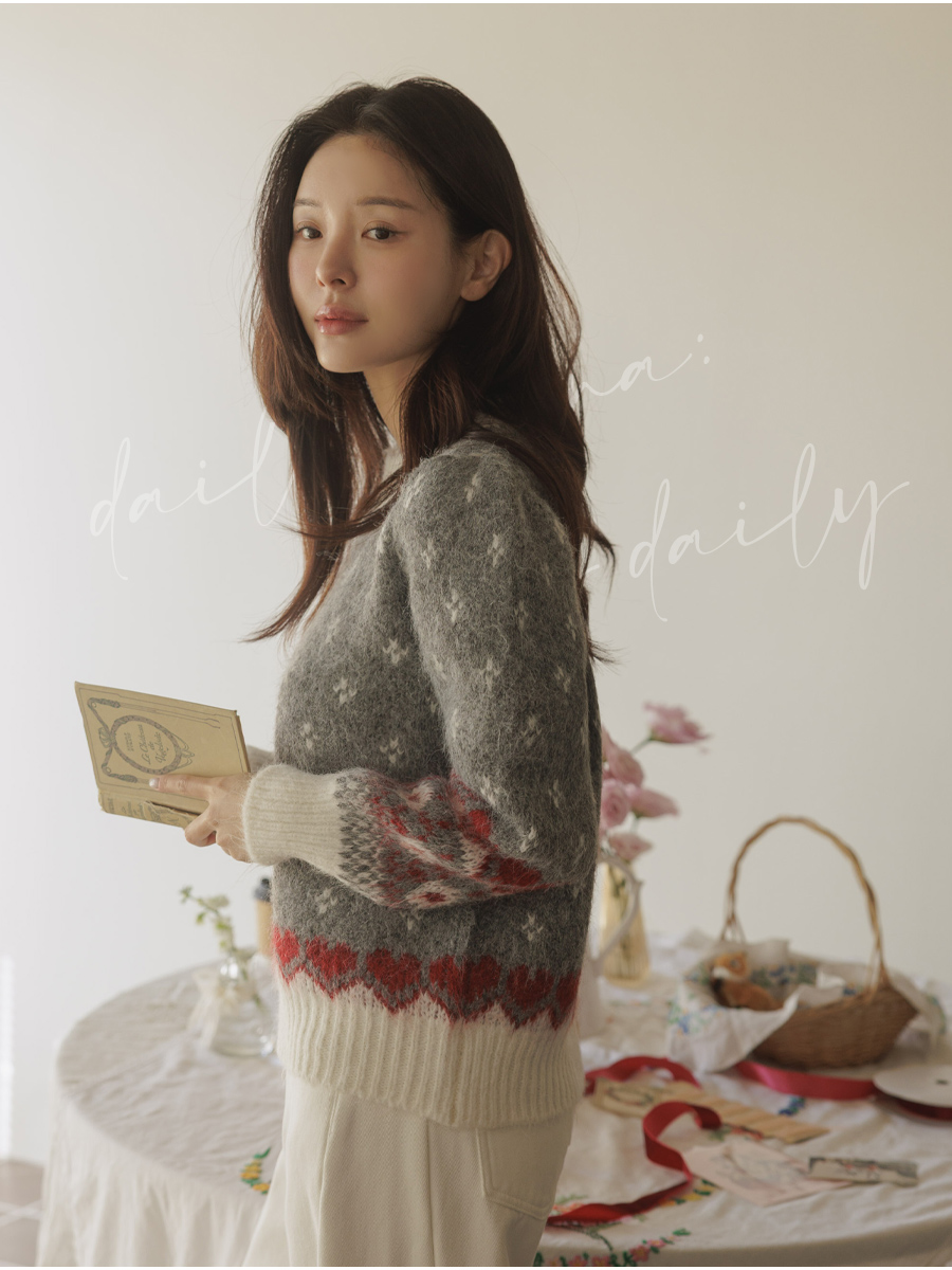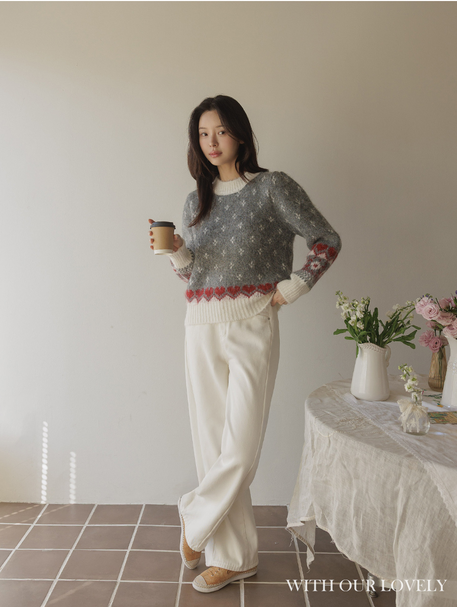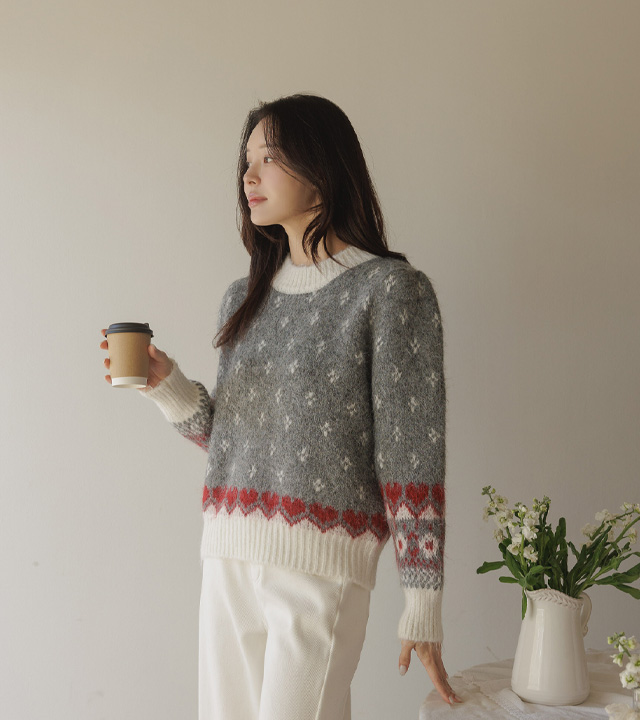 HOME > ALL > 로브네 하트 노르딕 숄더 퍼프 니트 [Free(55~66)]