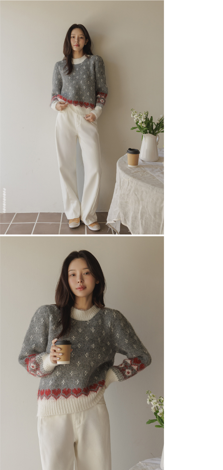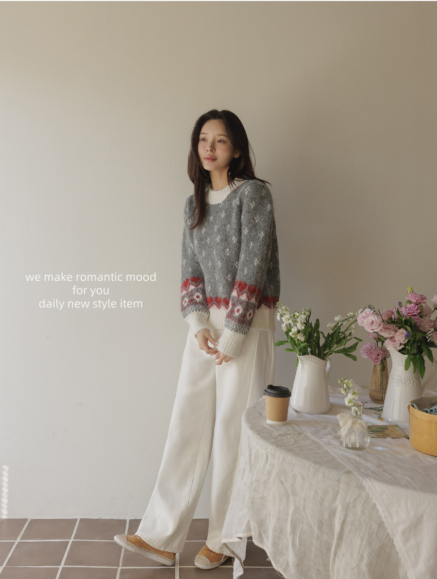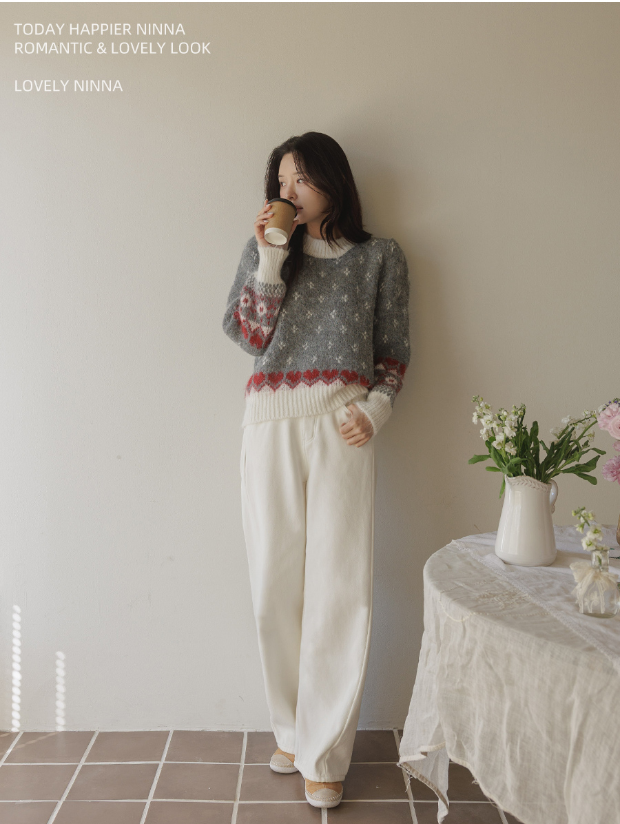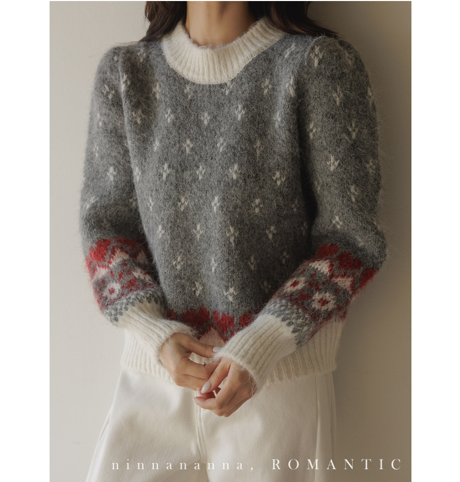 HOME > ALL > 로브네 하트 노르딕 숄더 퍼프 니트 [Free(55~66)]