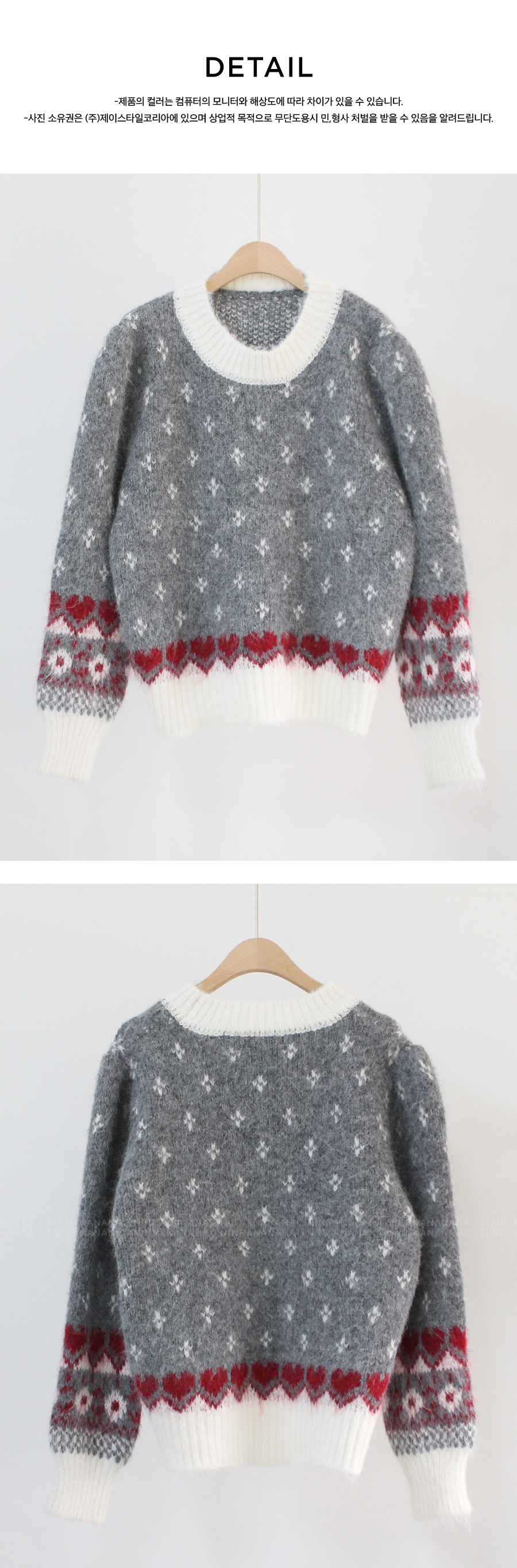 밑단과 소매 쪽에는 하트 패턴이