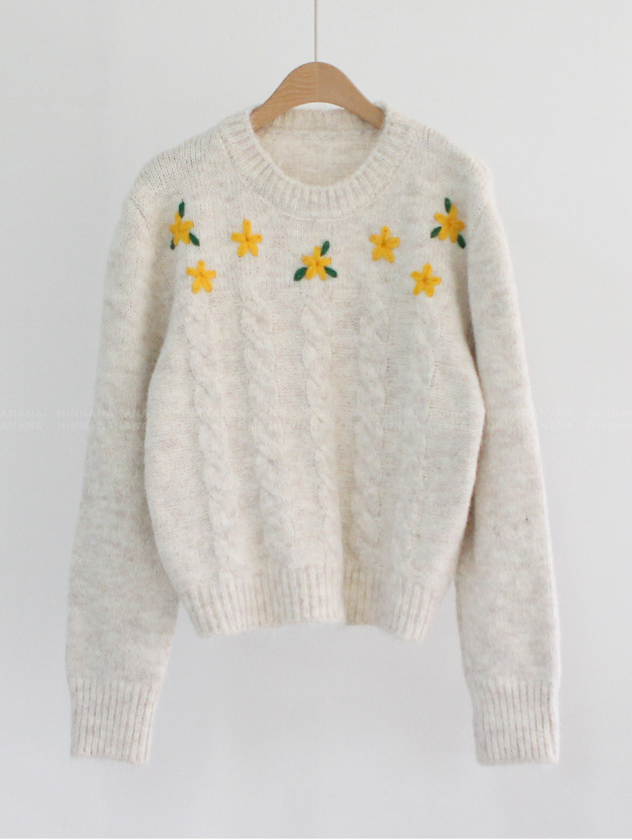 HOME > ALL > 델피니움 트위스트 플라워 자수 루즈핏 니트 [Free(55~77)]