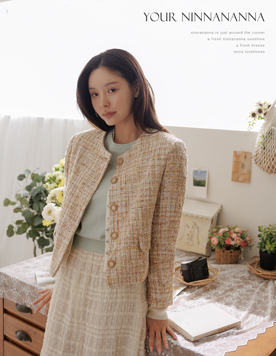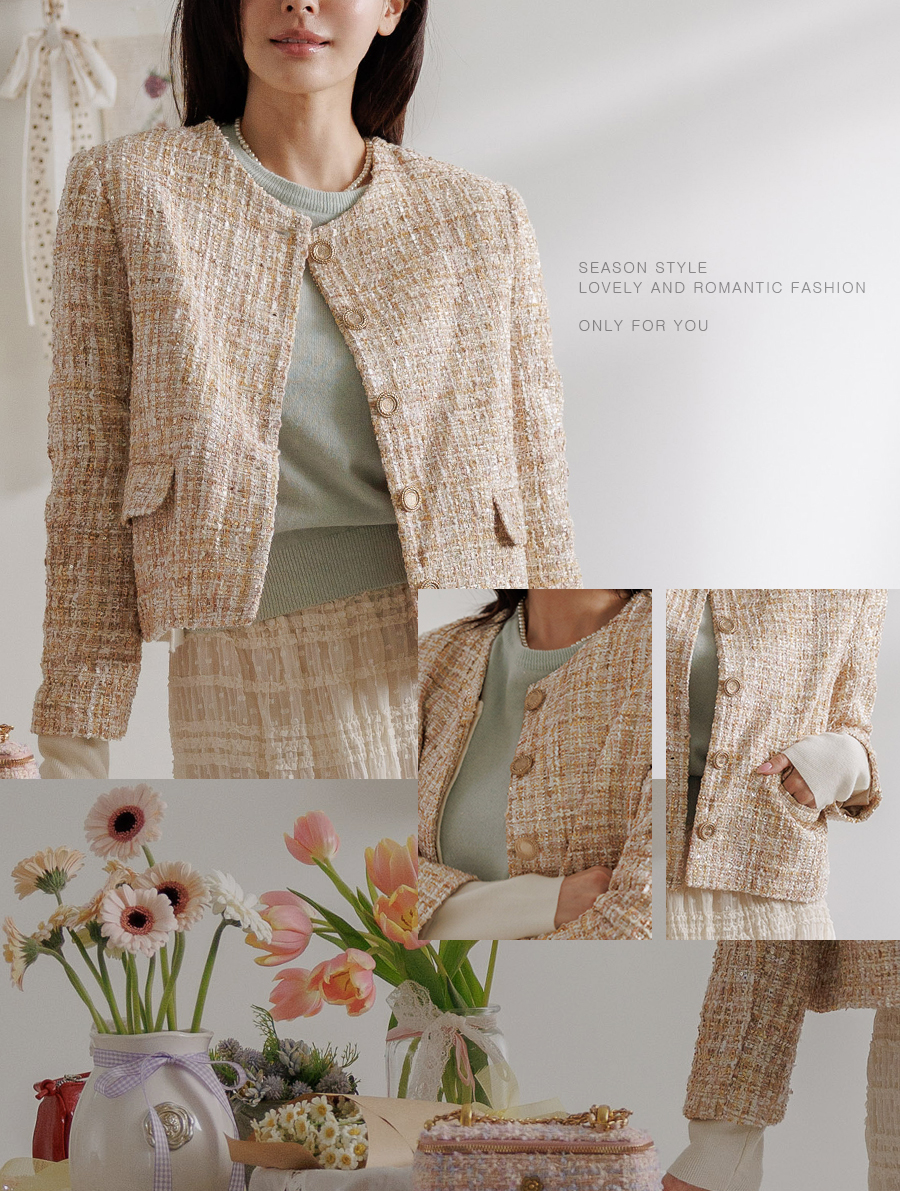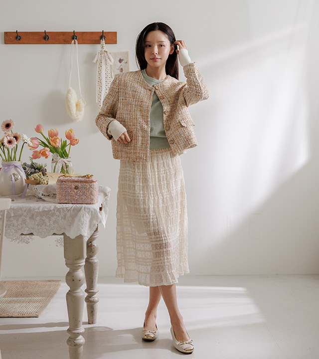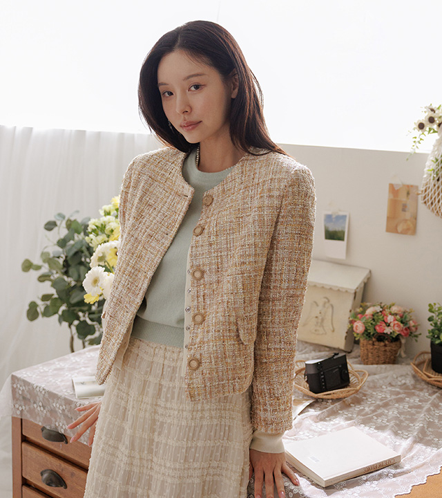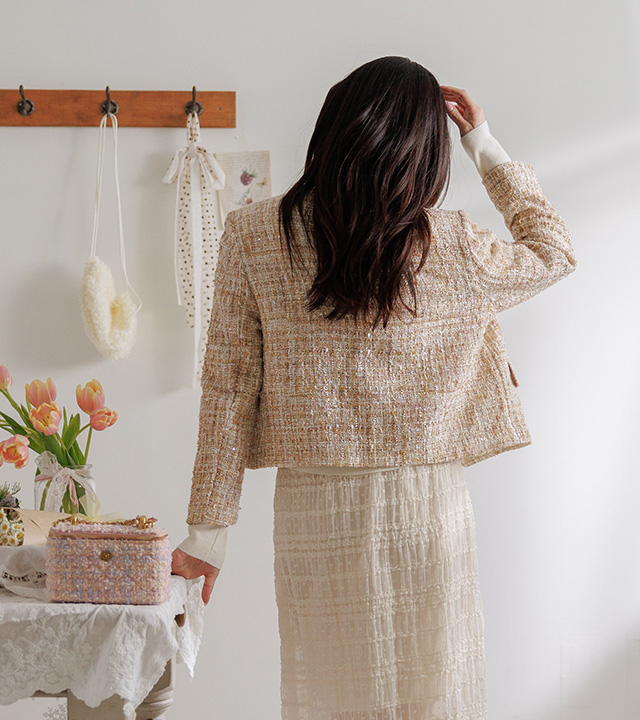 트위드 특유의 세련되고 고급스러운 분위기를 연출합니다.