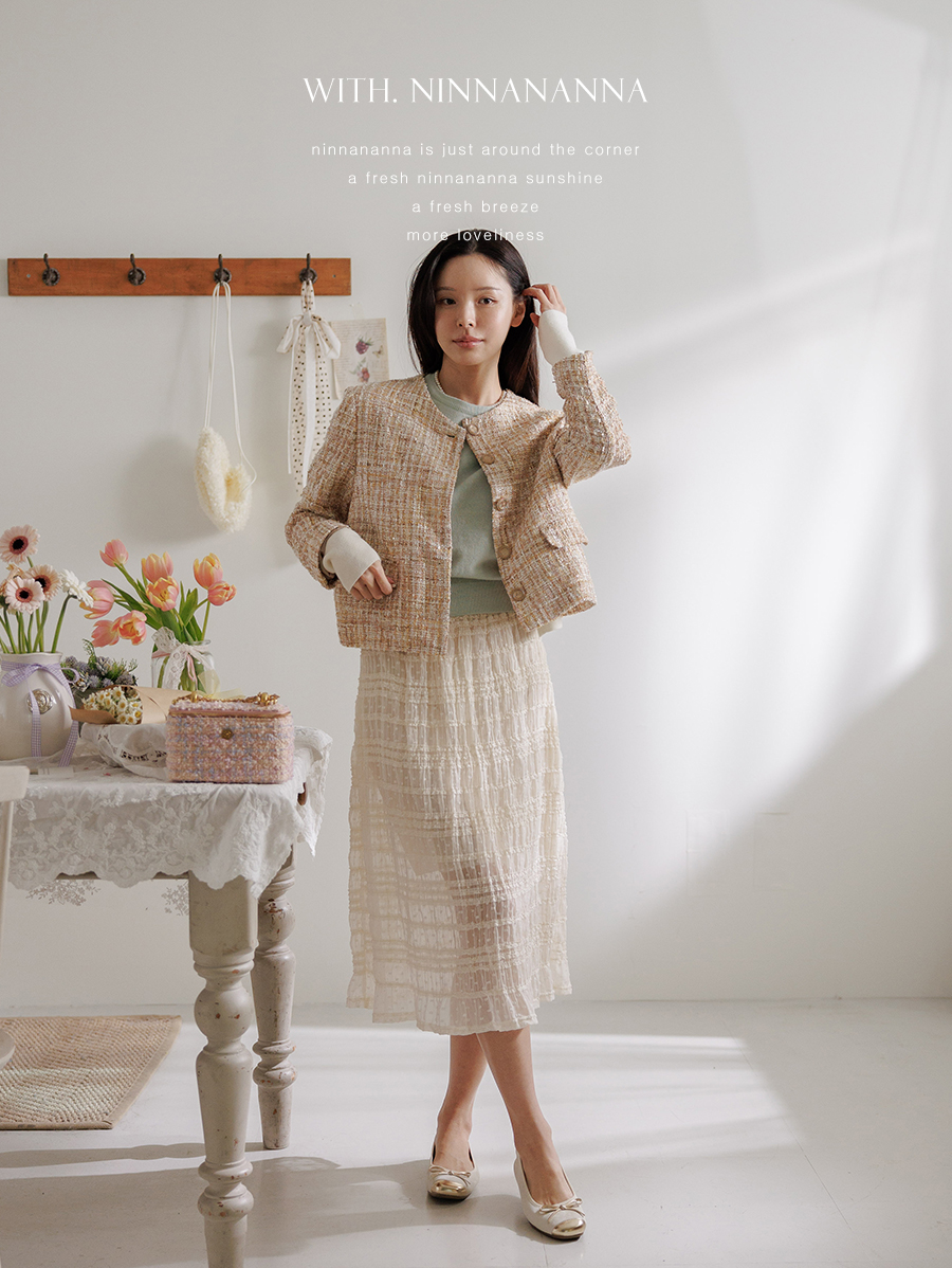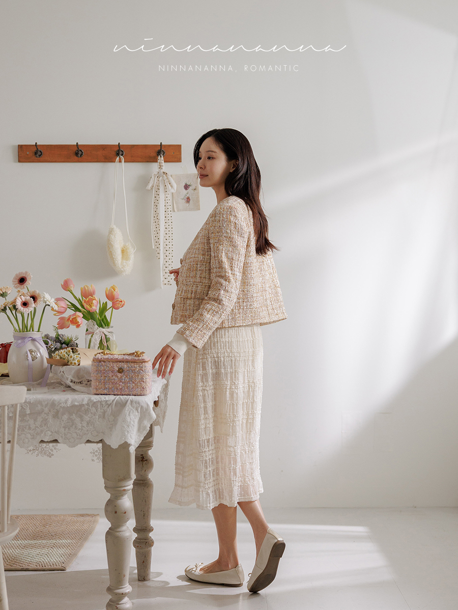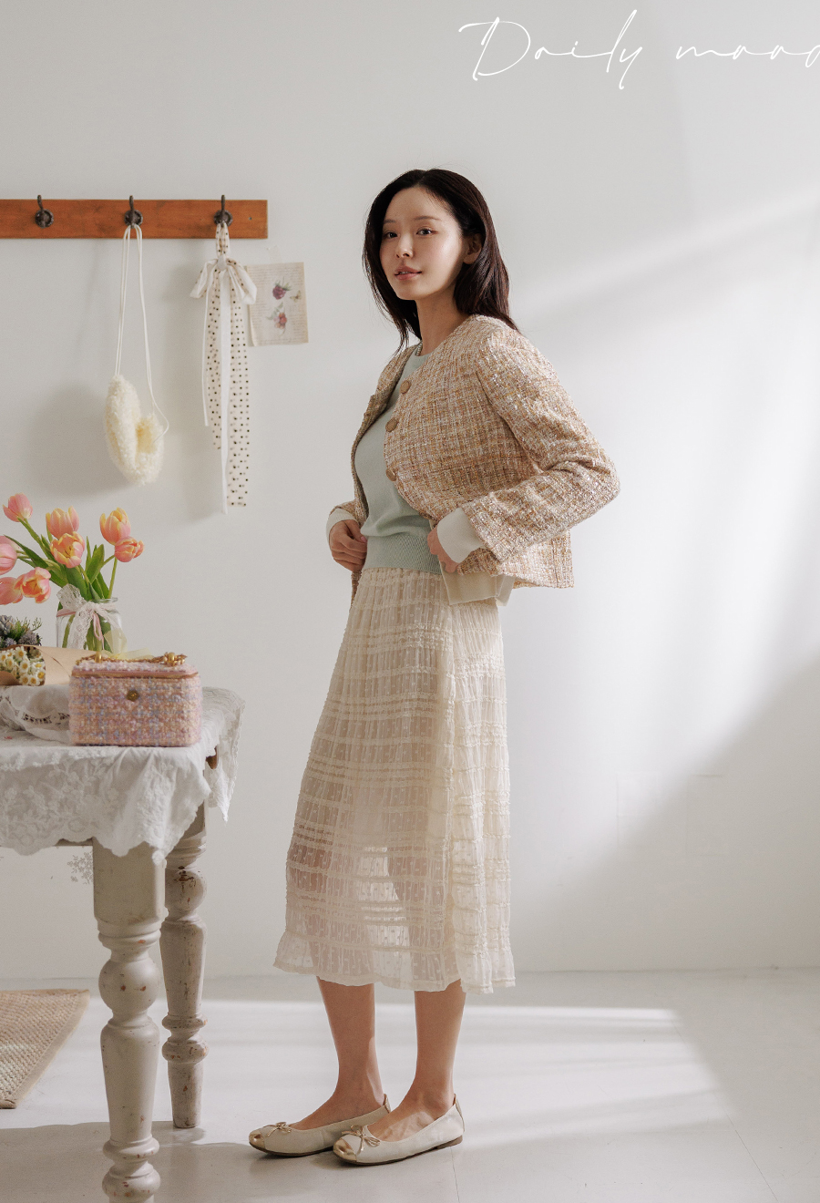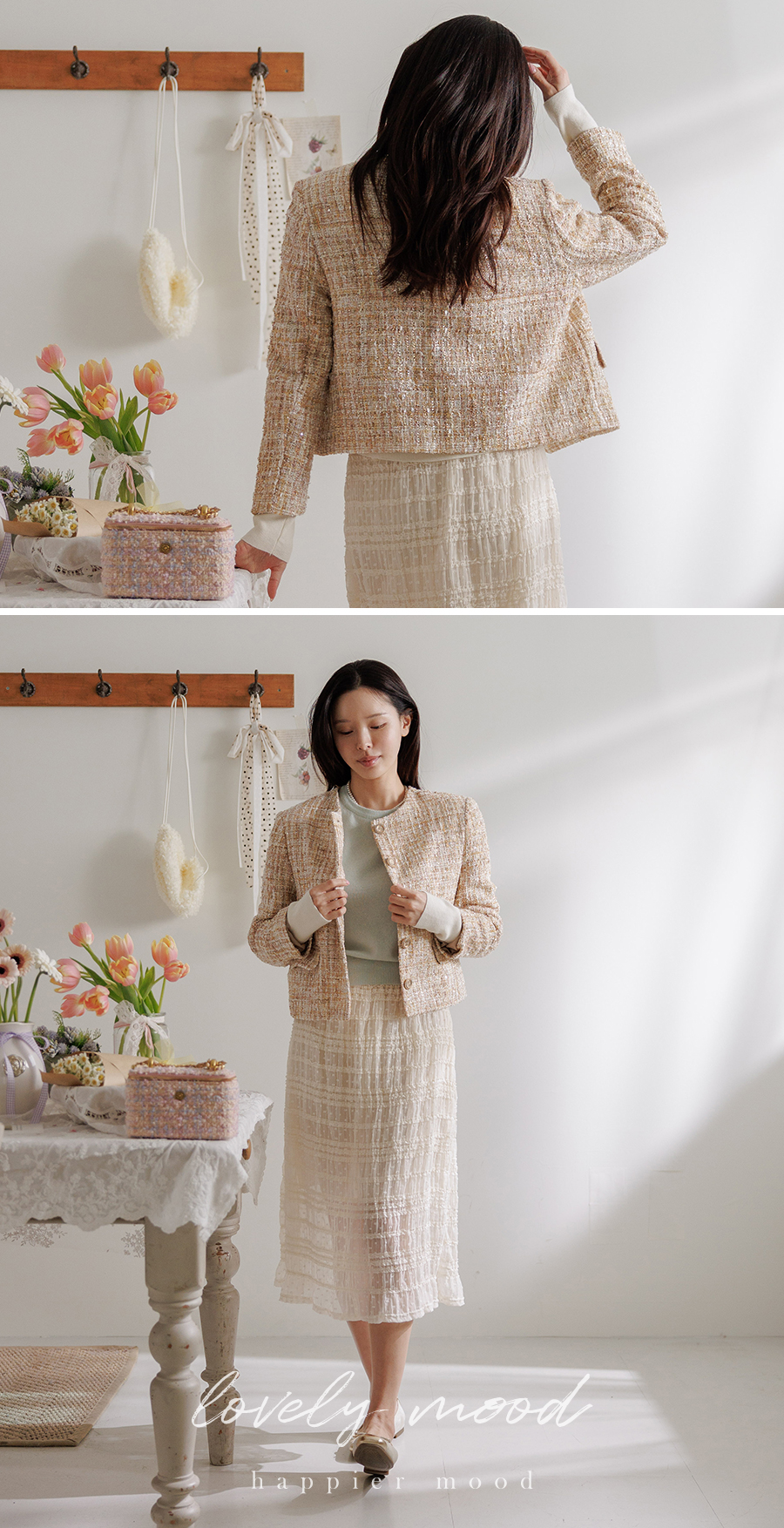 트위드 특유의 세련되고 고급스러운 분위기를 연출합니다.