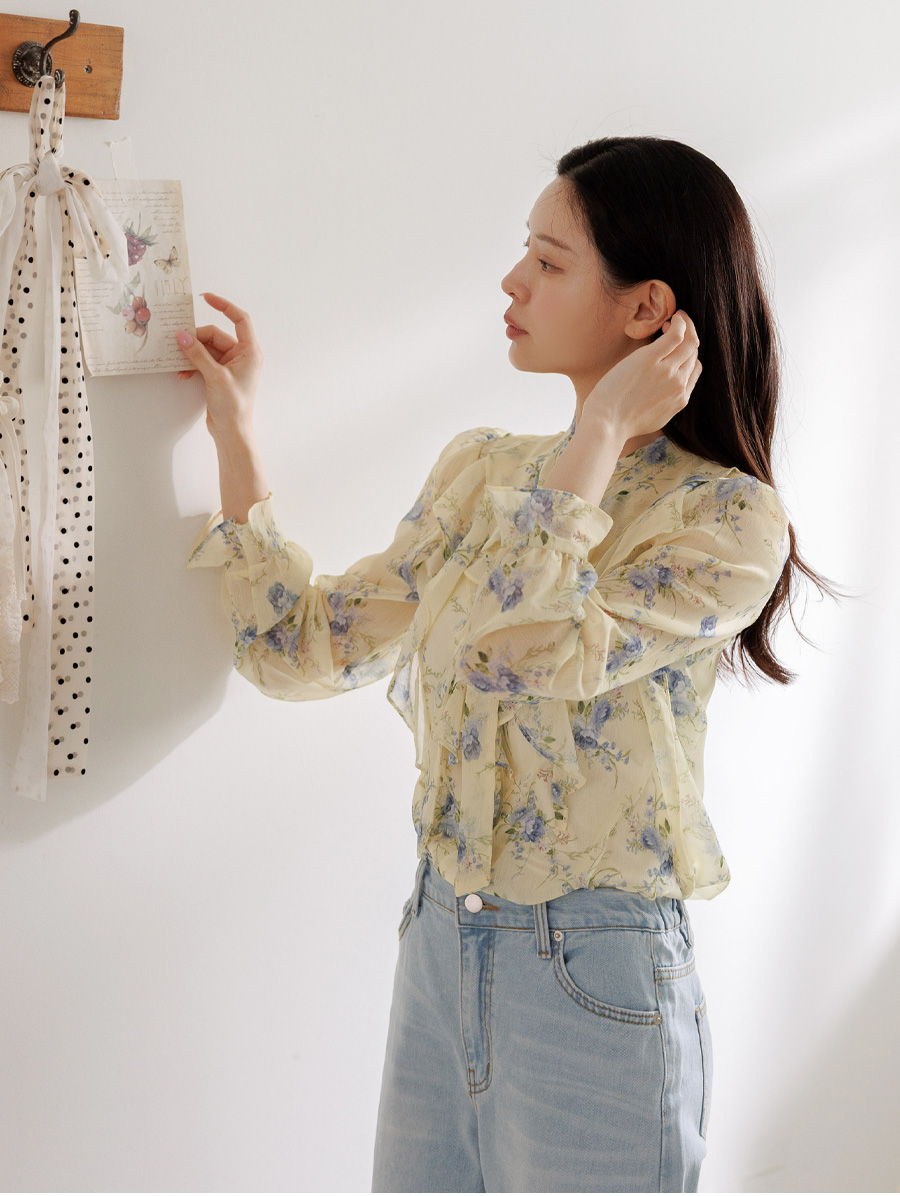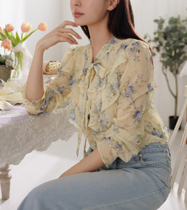HOME > ALL > 로엘스 이중 프릴 플라워 블라우스 [Free(55~66)]