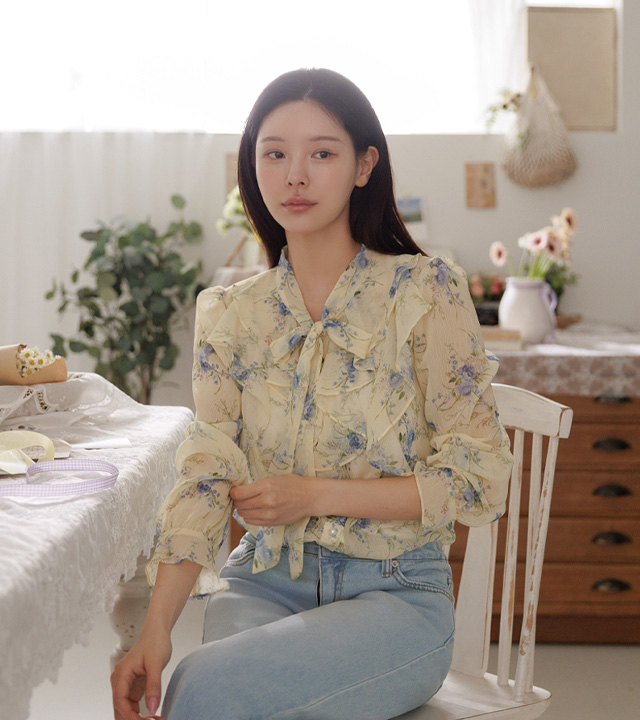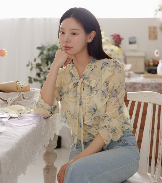 데일리부터 특별한 날까지도 추천드리는 블라우스♡ 프릴과 어깨 셔링 디테일로 여성스러운 무드:)
