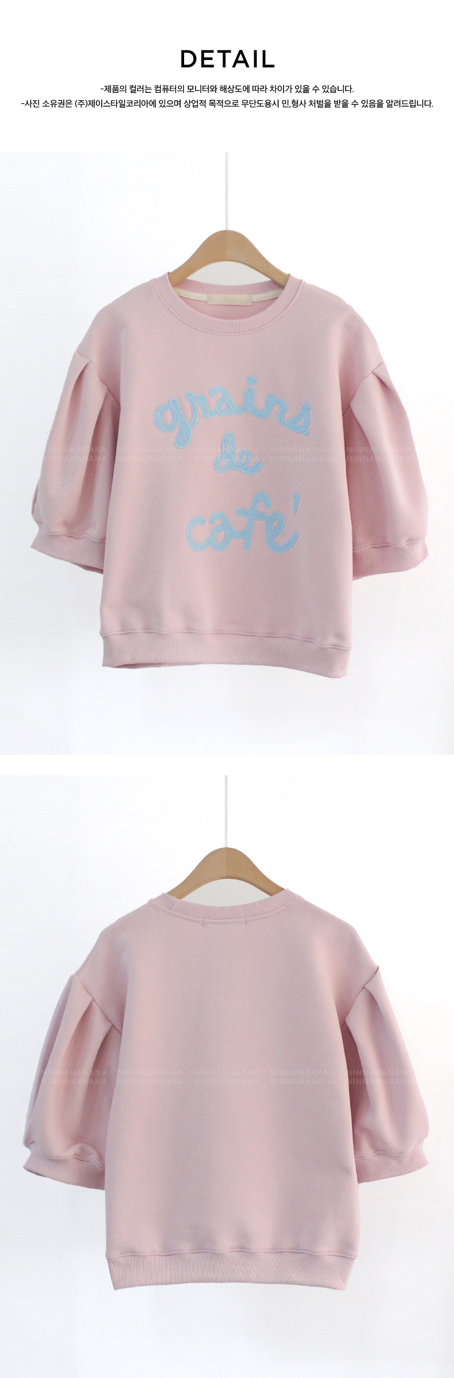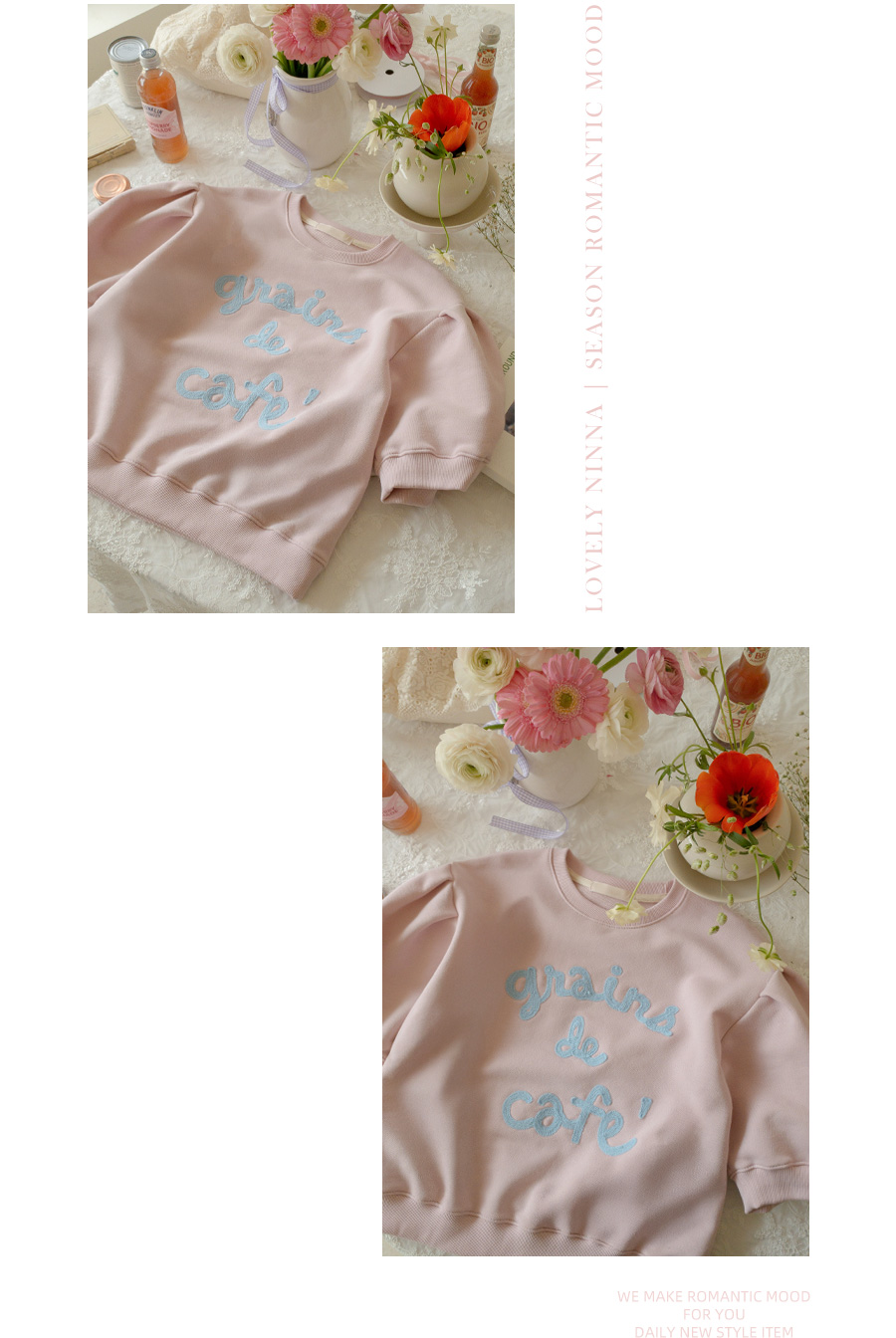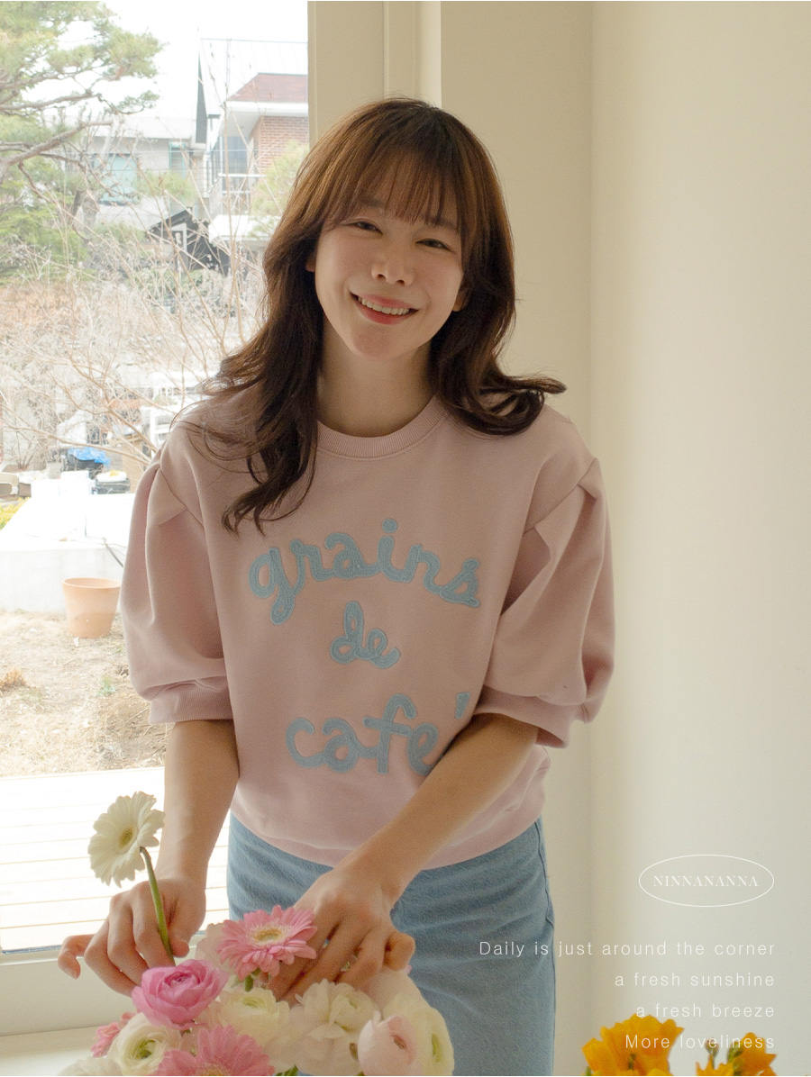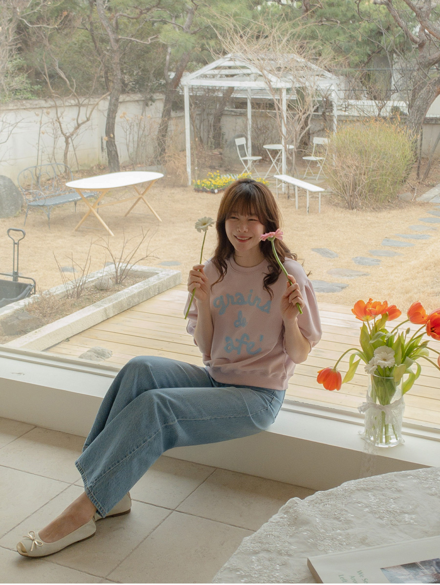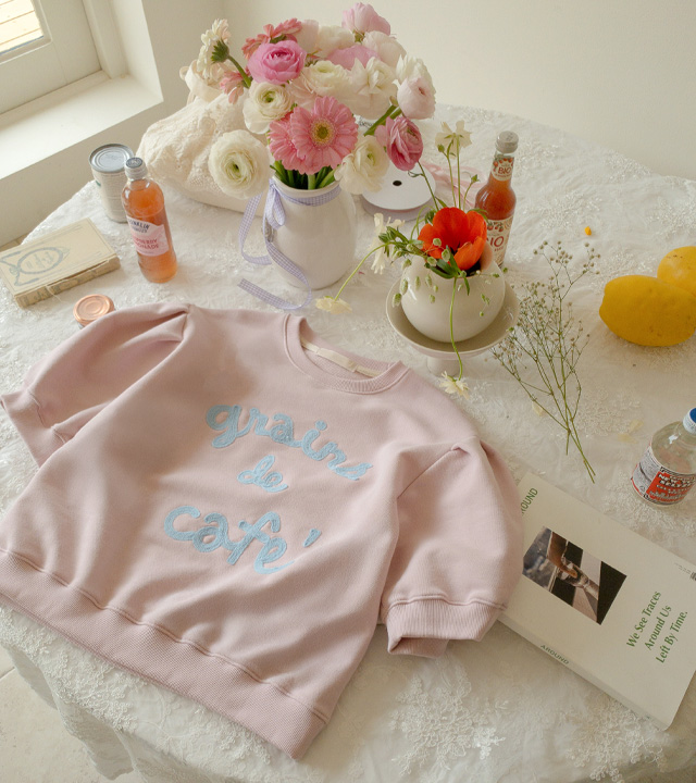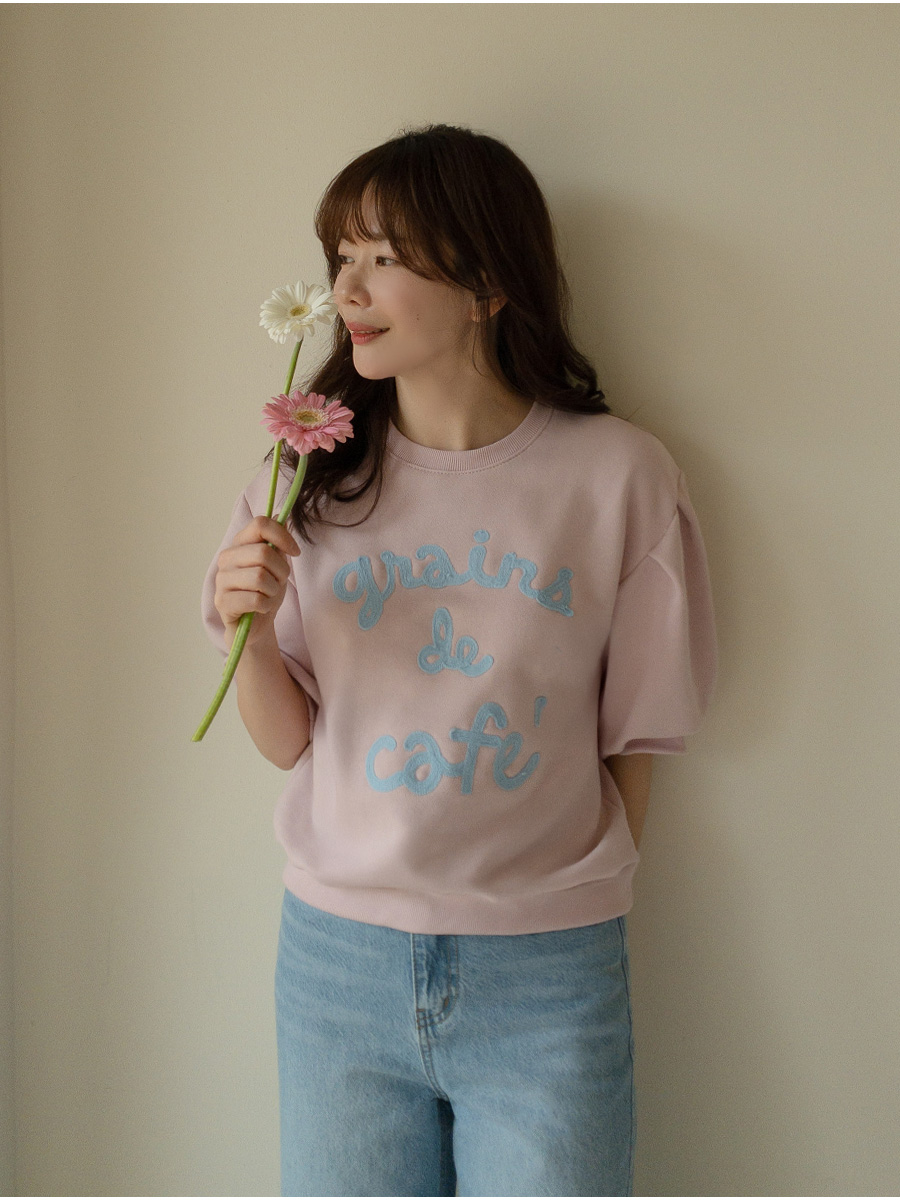 탄탄한 소재와 여유 핏으로 편안하게, 자수 레터링과 퍼프 디테일로 러블리하게 입기 좋은 맨투맨♡